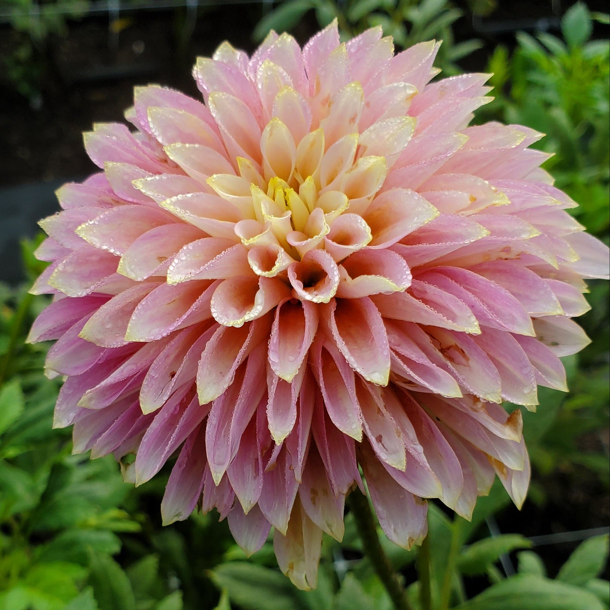 A muted pink with icy lavender undertones that has a sunshine yellow glow within and has the most delicate gold tips. This bloom adds depth and class to any arrangement.