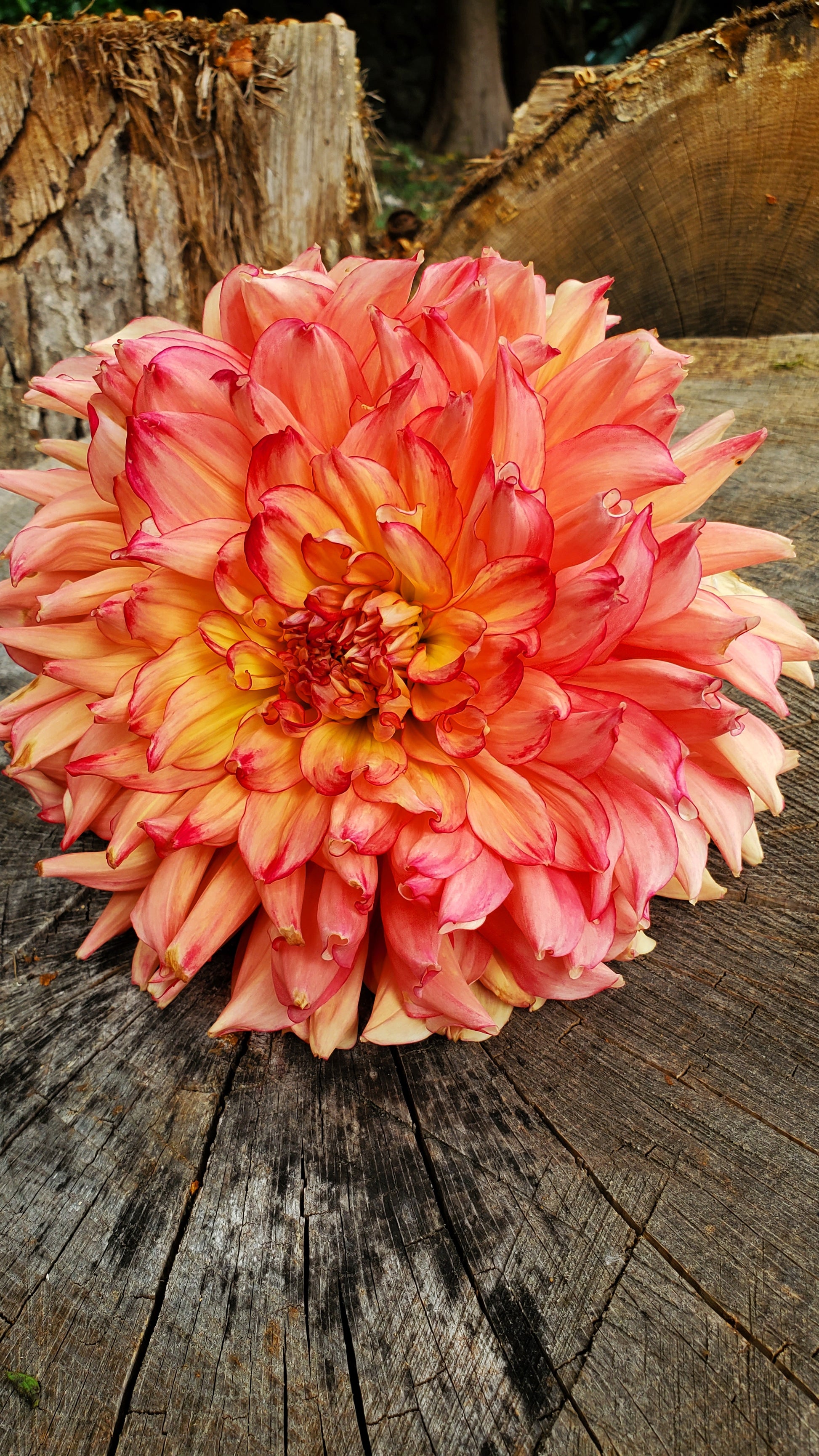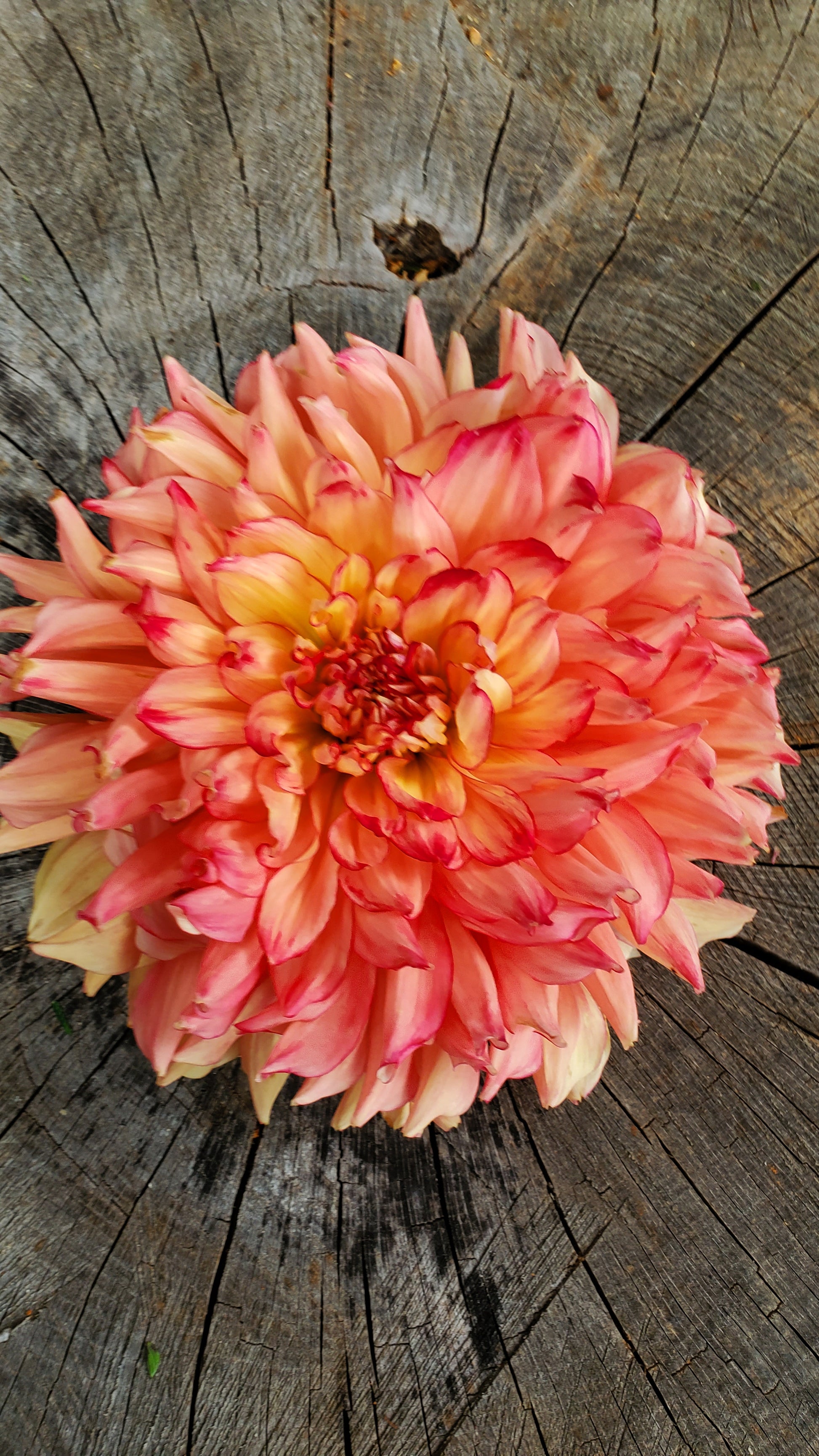 Another favorite, with gorgeous, large blooms. Sometimes they're a softer raspberry pink with lemon yellow centers and a magenta edge. Then as cooler temperatures arrive, it transitions to a more intense coral raspberry color. A showstopper!