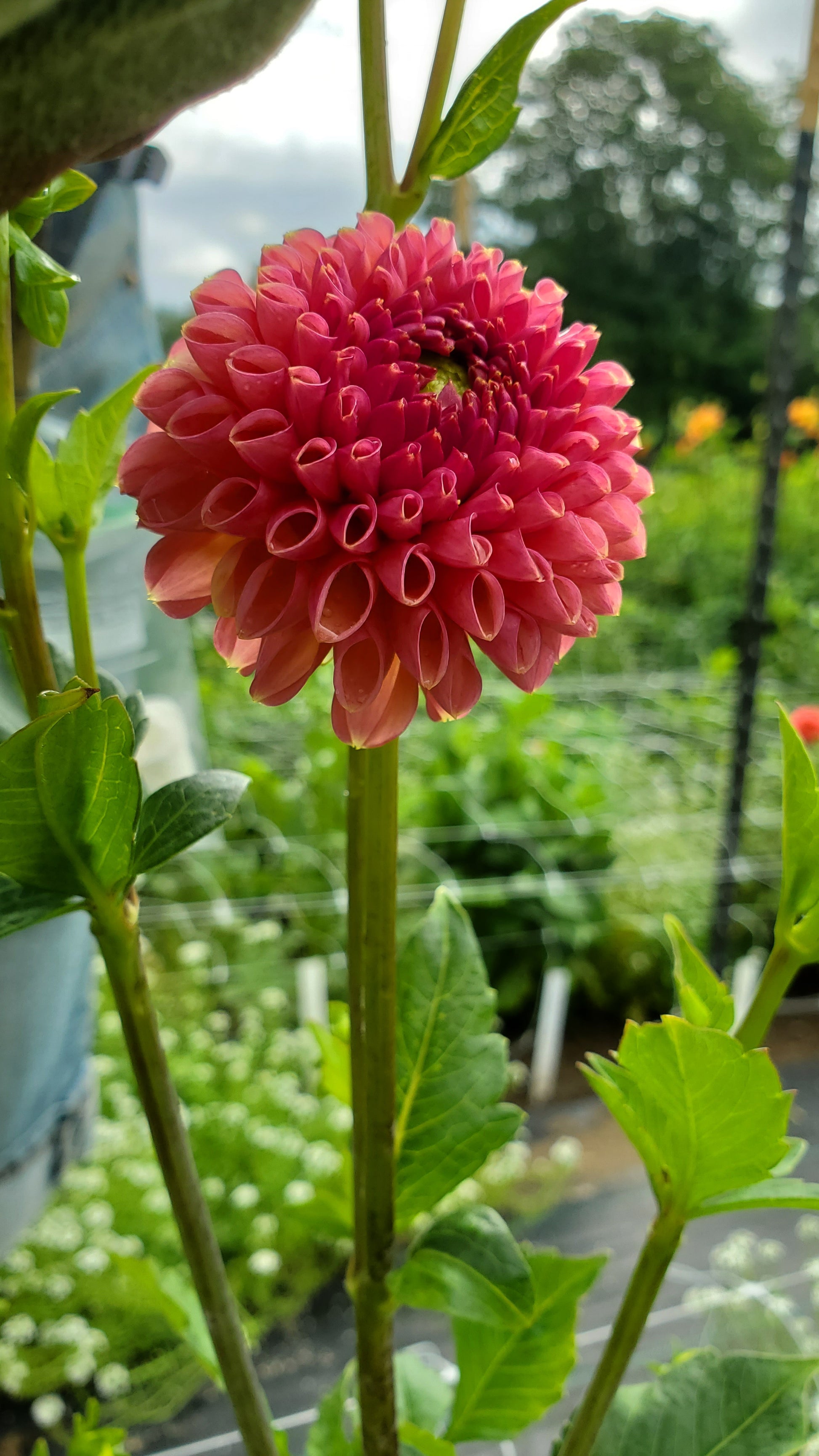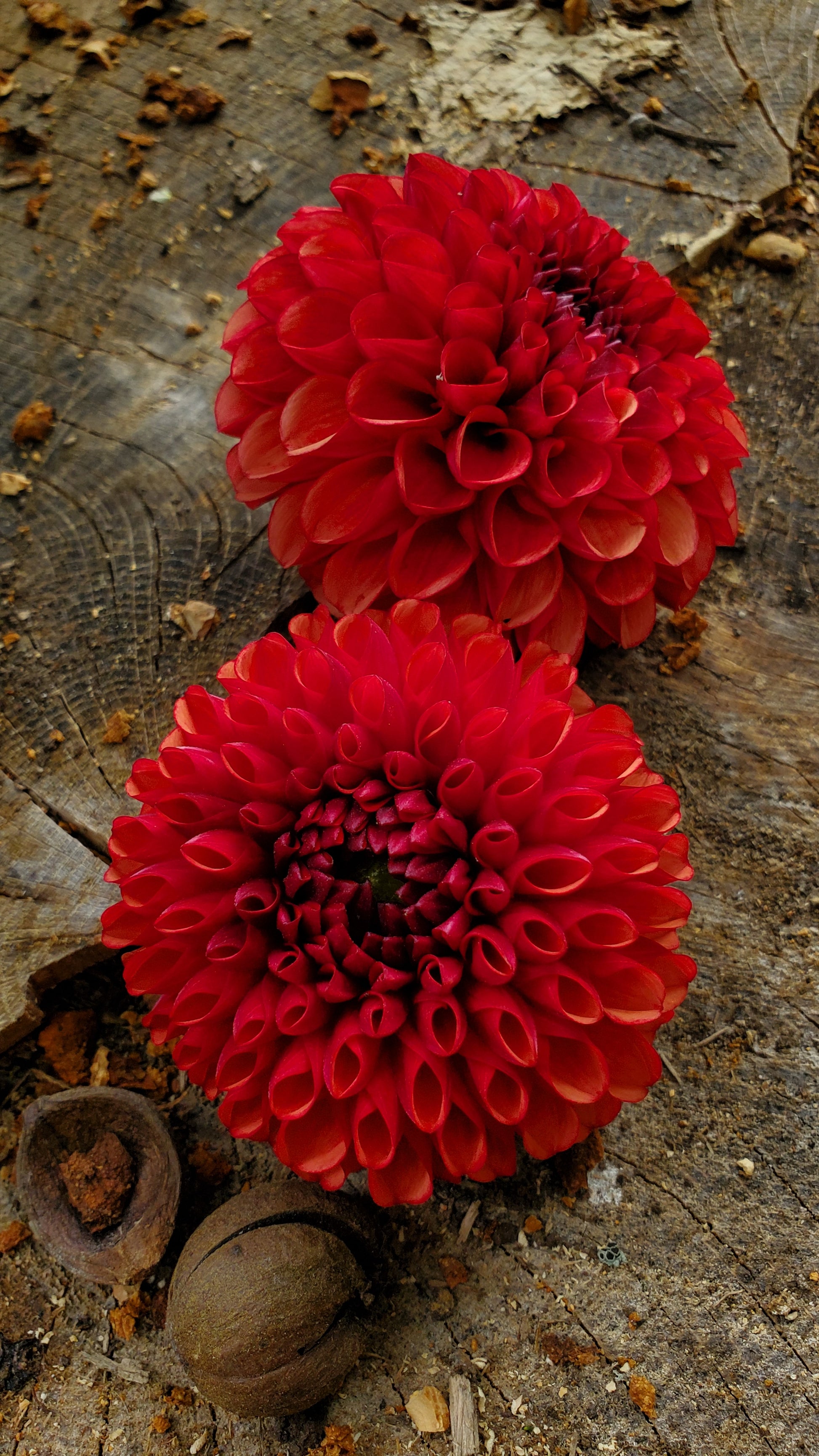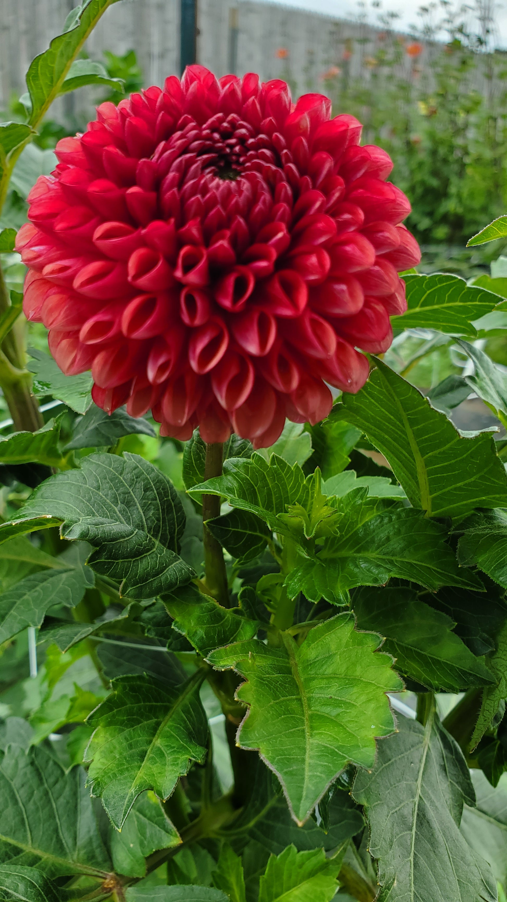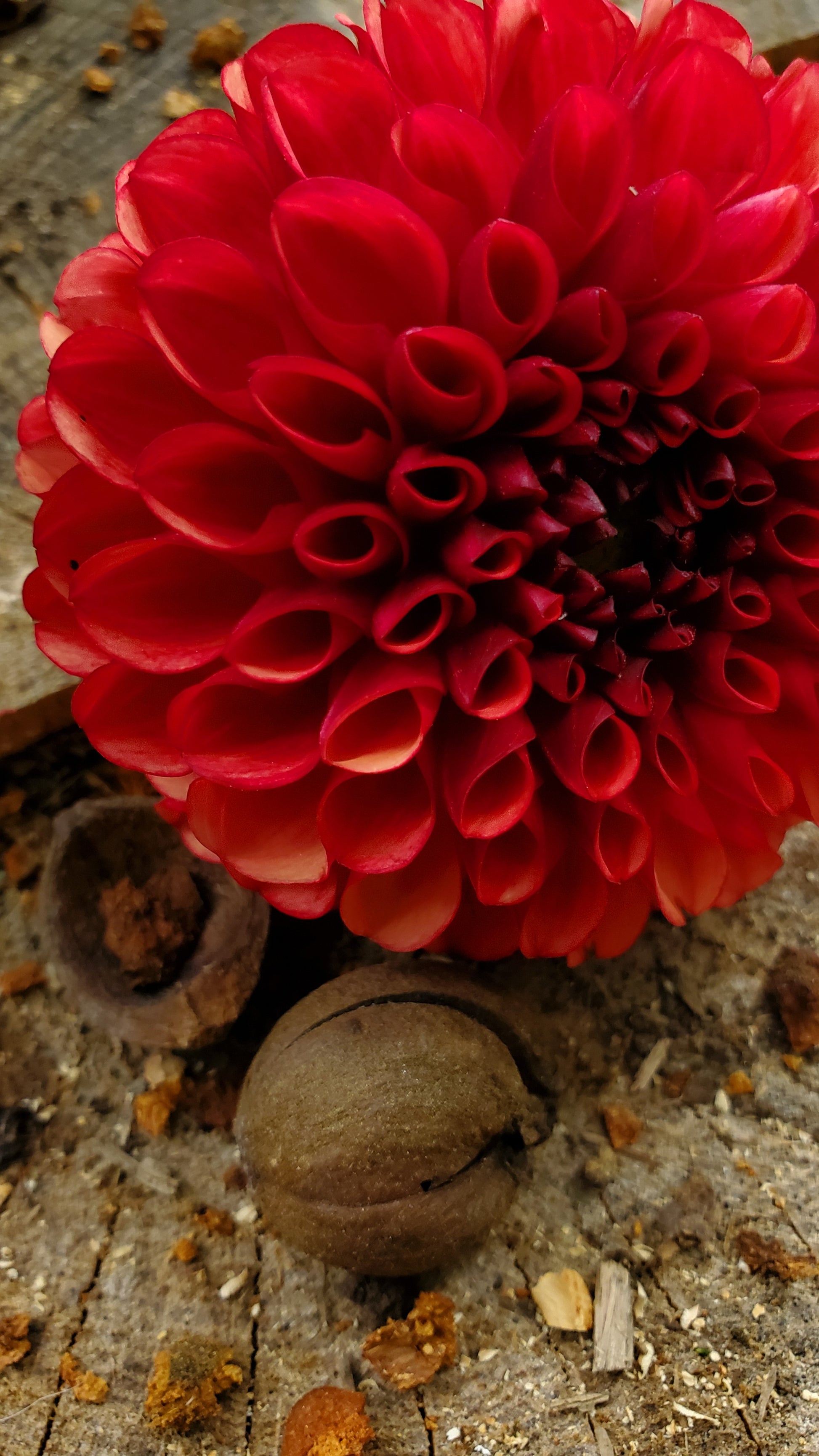 Deep rust, red blooms. Sometimes the center almost looks burnt. A drop-dead gorgeous ball that one should make a place in the garden for.