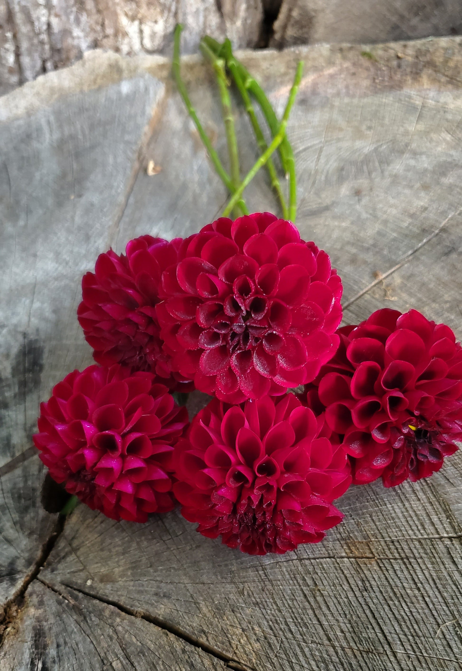 I love the darker red-burgundy dahlias. Ferncliff Ebony doesn't disappoint with it's almost black-red color. It blooms constantly and fits so well into a bouquet, not too large and not too small.