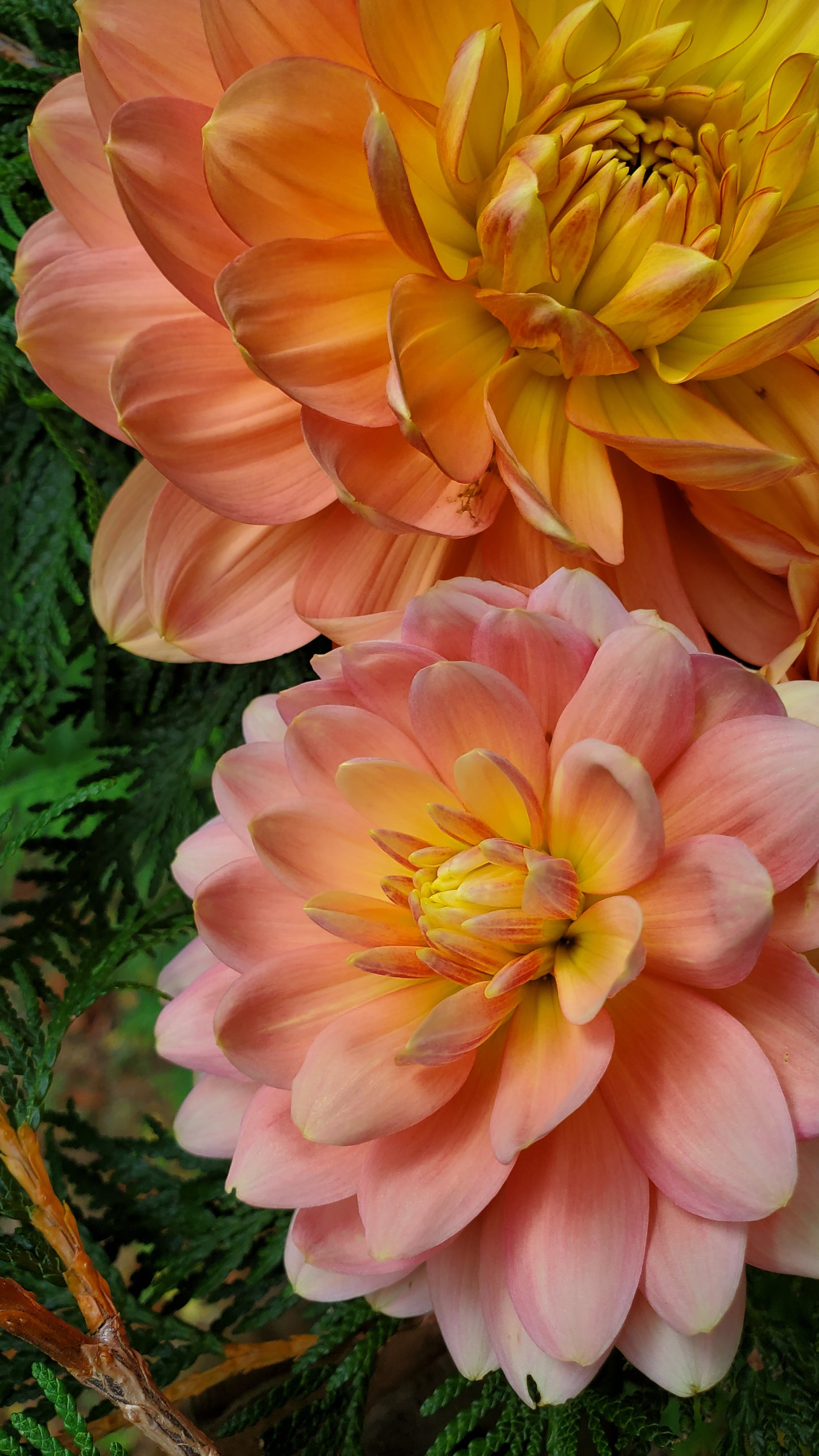 This dahlia can surprise you with her color changes. She can range from a light pinky/peach, to a lovely orange/yellow, to almost completely yellow. Regardless, she is breathtaking in all her forms. And true to waterlilies, she will close up at night.