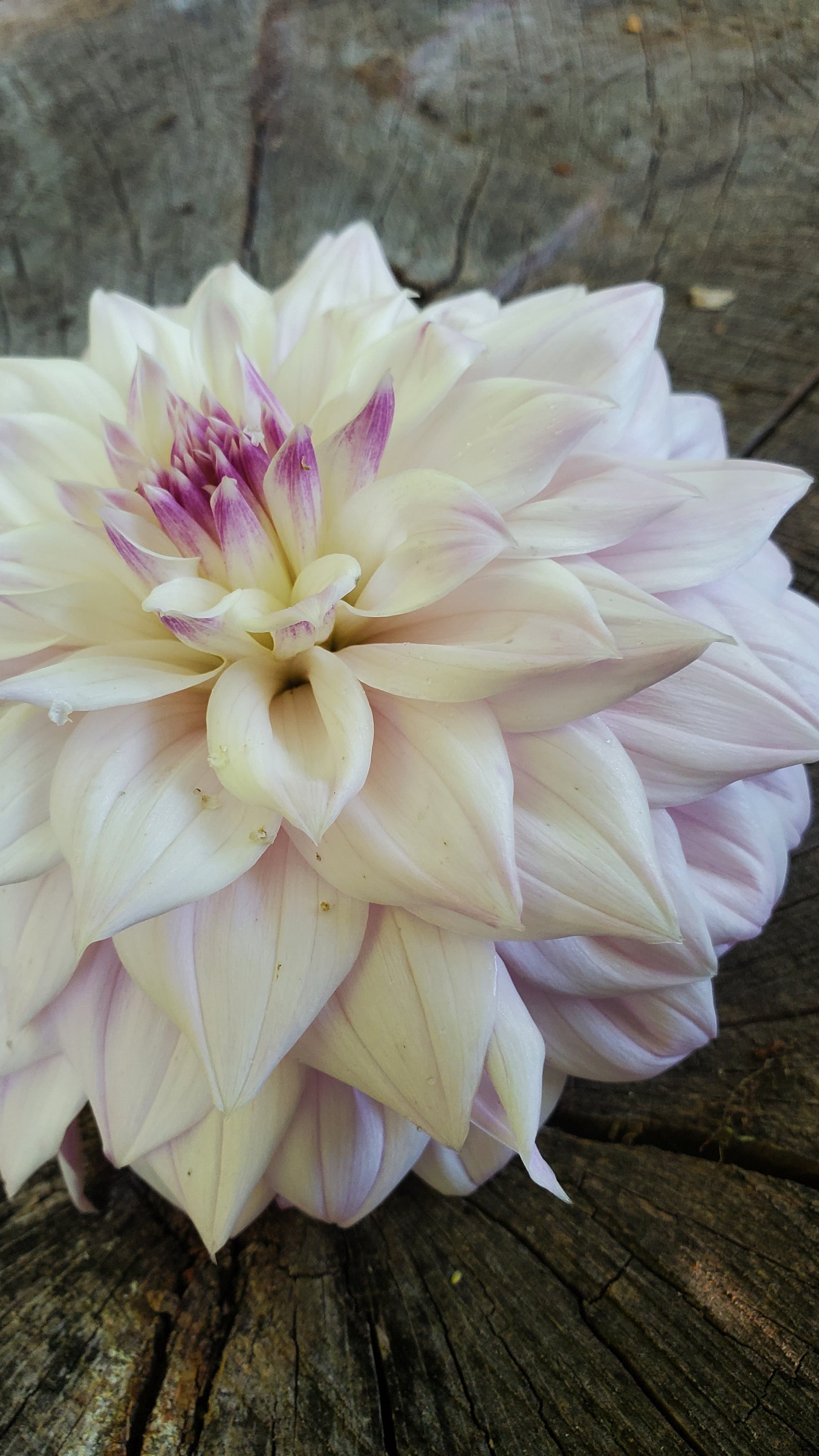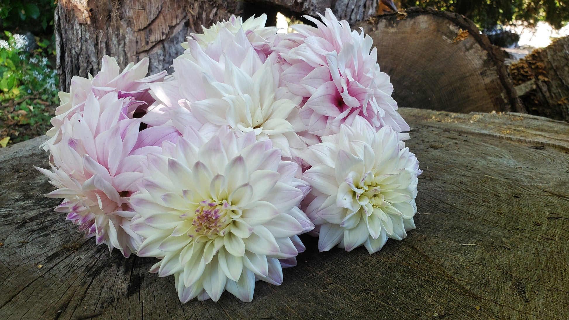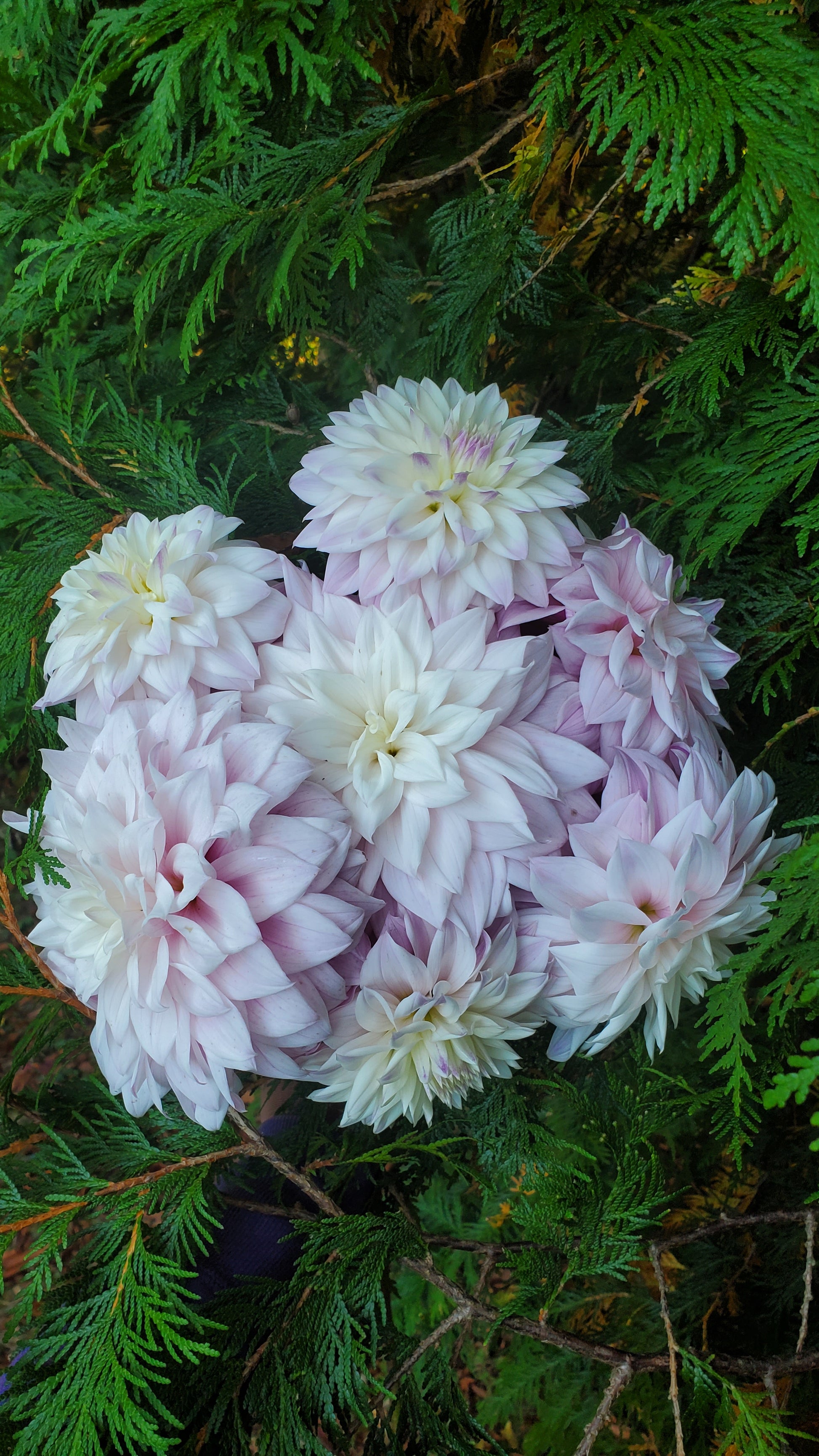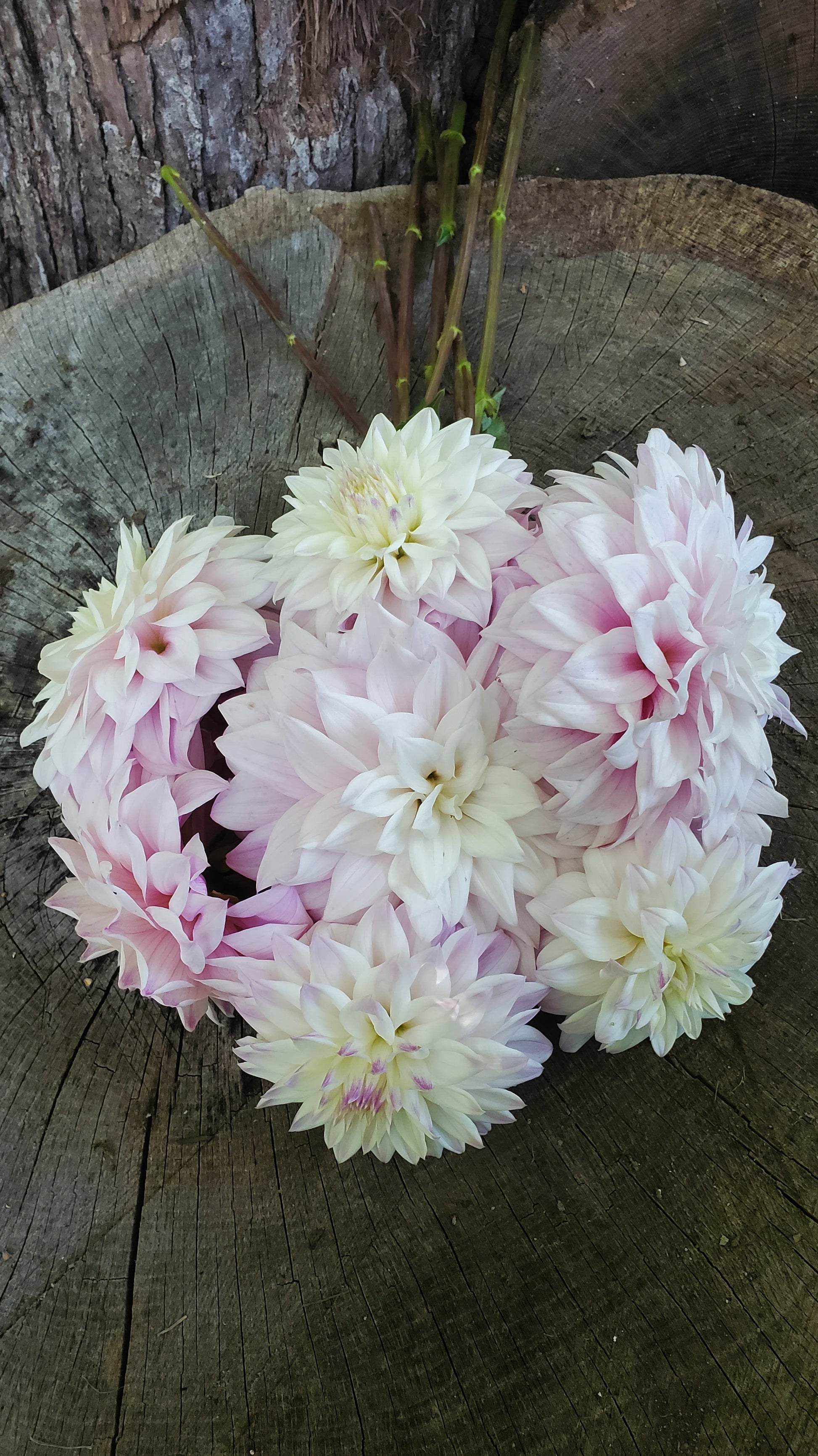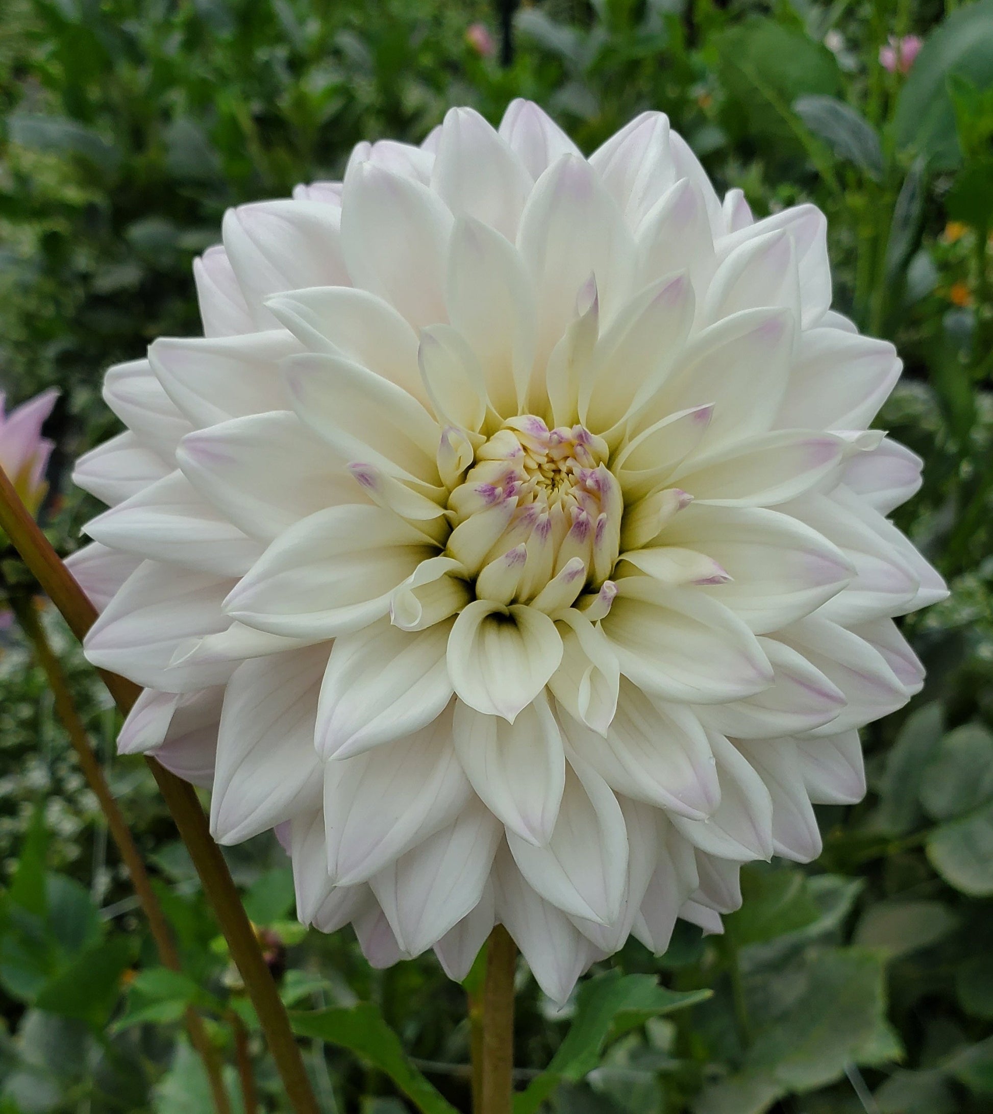 A beautiful white with blush and lavender undertones. These blooms will fill a vase quickly, creating a stunning masterpiece for your home. It's a tall plant with great stems, 5.5'in my garden.