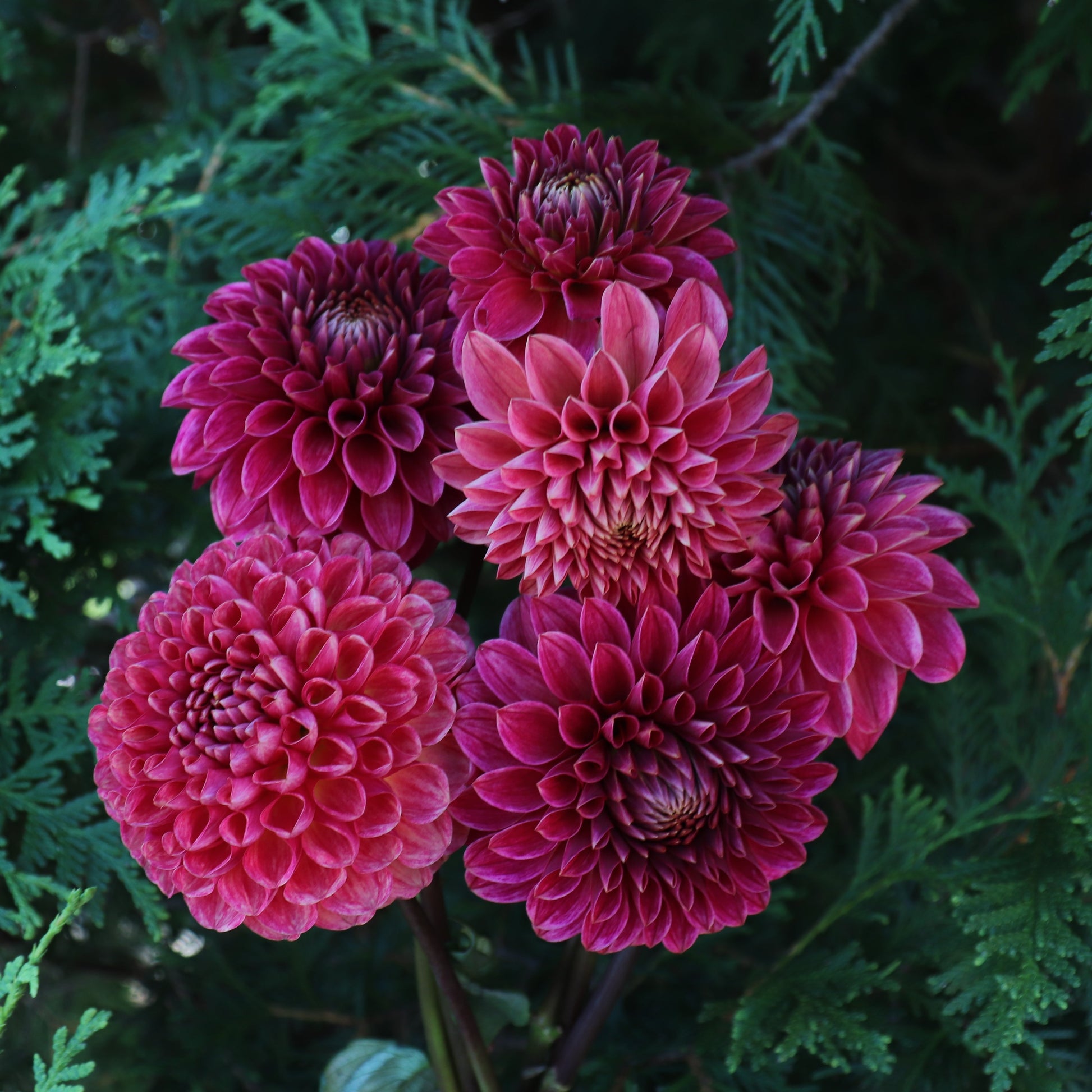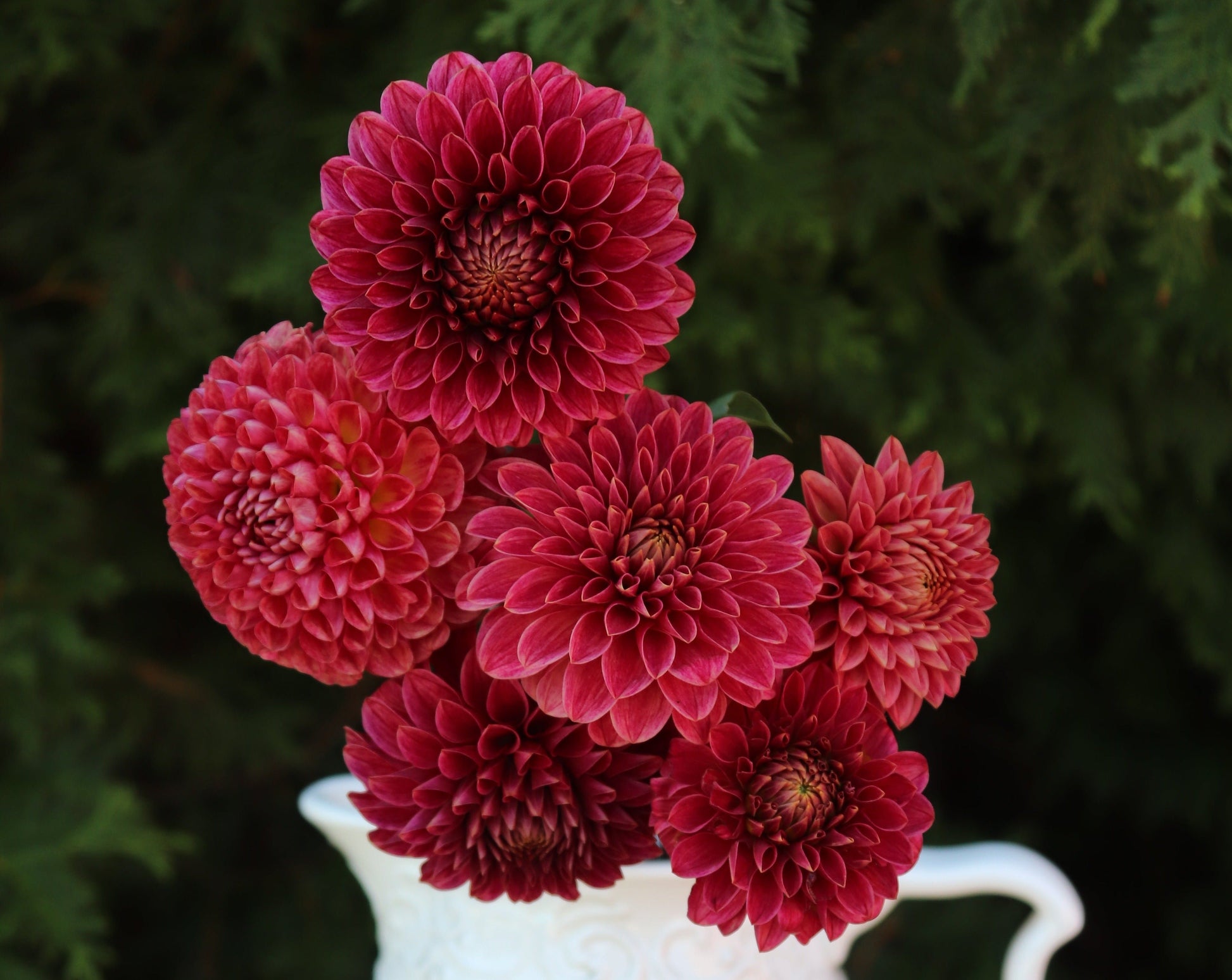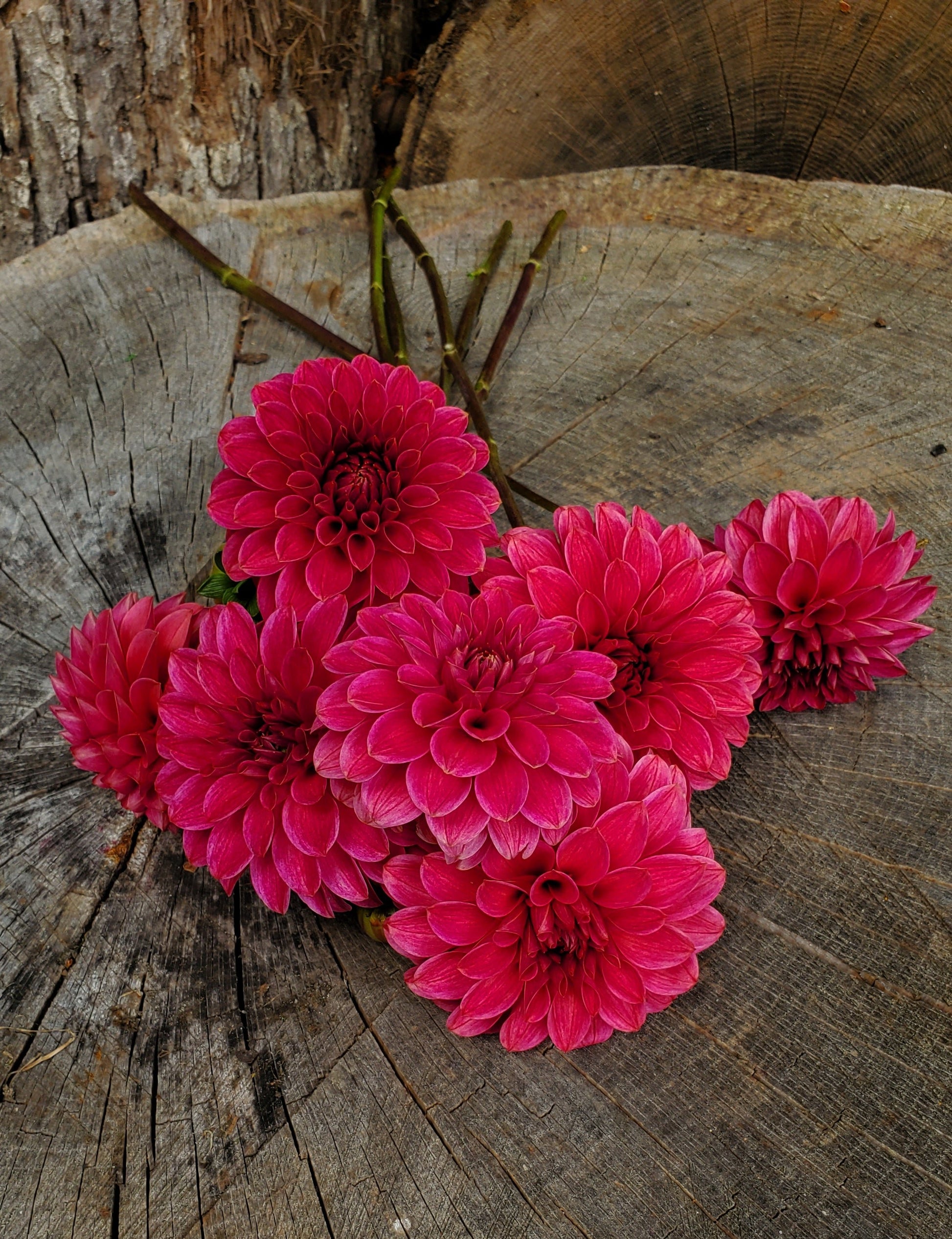 Rosie Jo is a deep, rich, smokey red, with the slightest touch of white on the petal tips. She seems to glow, like dark embers in a fire.