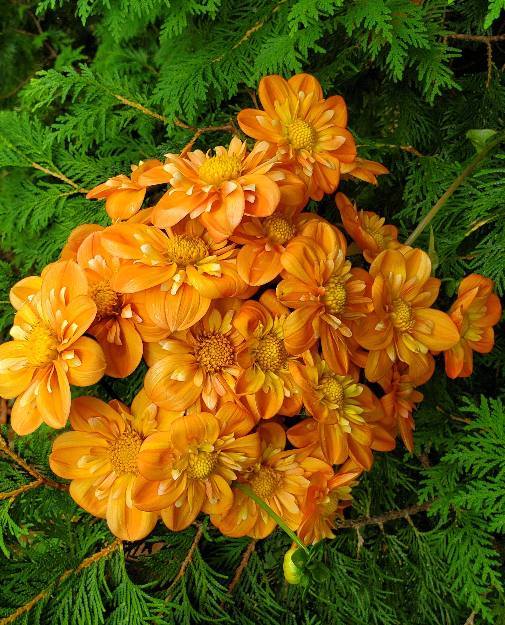 Introducing my new Collarette, Lillian's Butternut, named after my Granddaughter. She was entered into many trial gardens in 2025, after growing her out four years. She garnered a high score of 87.6, with some individual scores of 89.5 and 88.5. Some comments from the judges......Had to fight the bees to judge, must have a higher pollen smell; Very prolific - good looking flower with long stems; Unique color; Beautiful bloom, would grow; Petaloids were always lighter, especially at the tips, giving good definition against the ray florets. I've tried to capture all her various shades and intricacies of her blooms, but photos really don't do her justice.