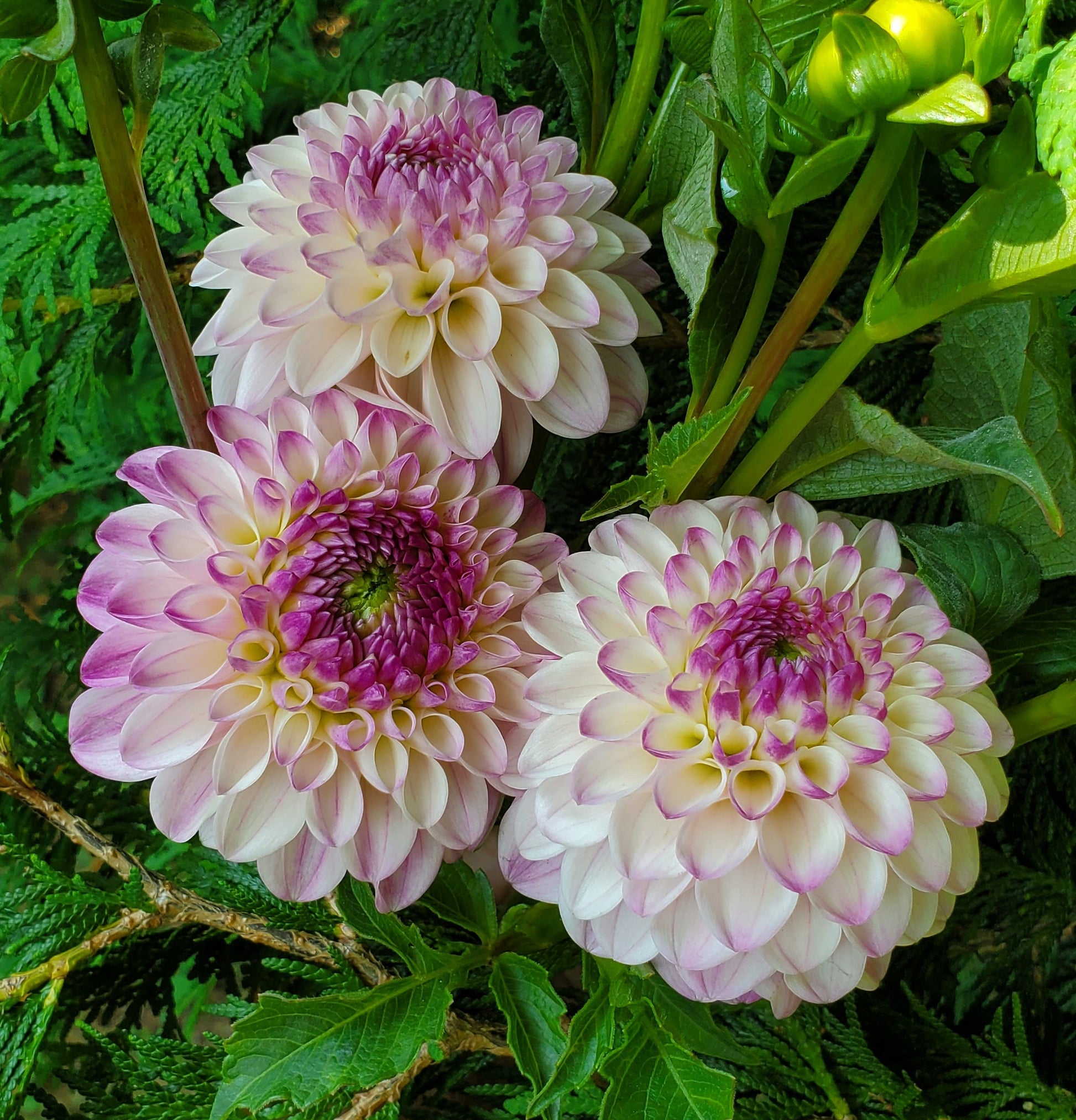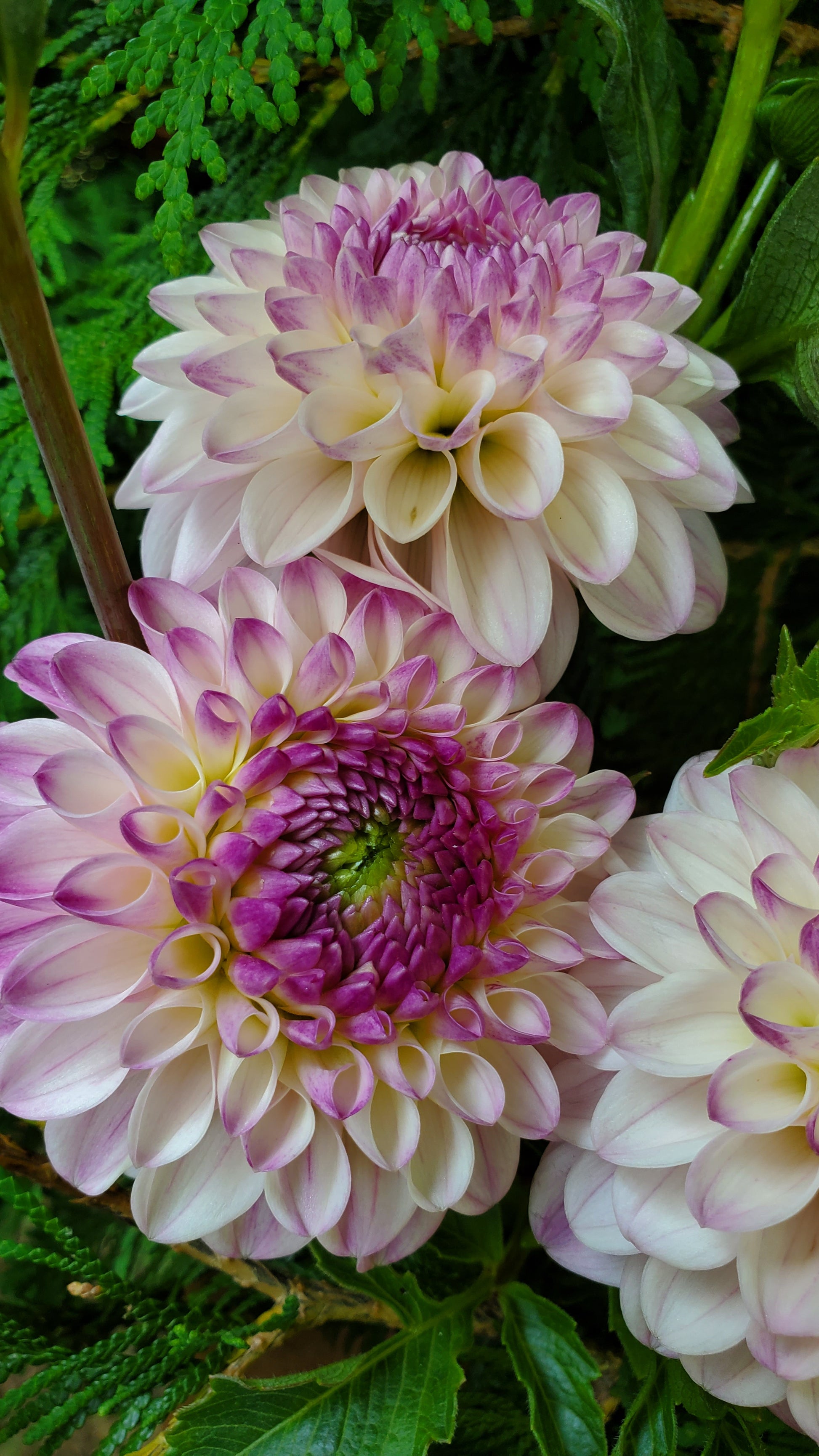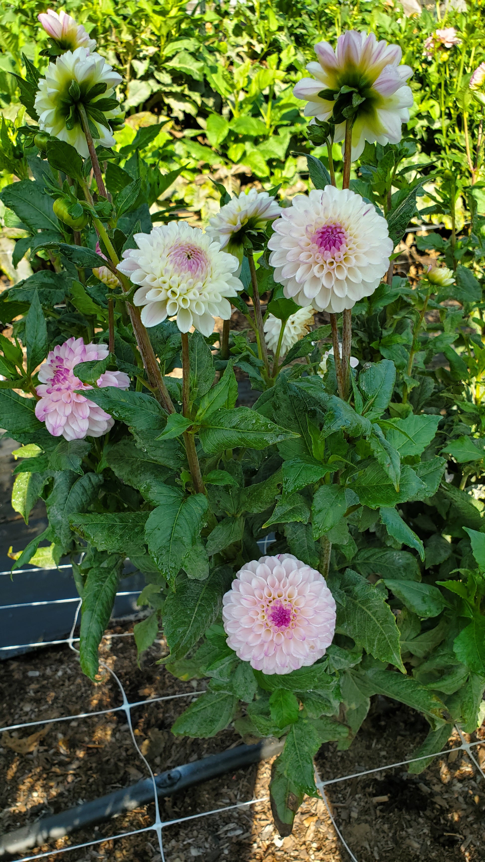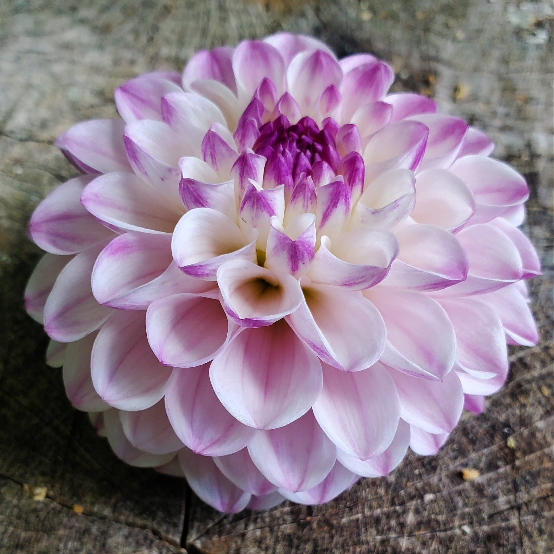 A delicate dahlia in a whimsical blend of lavender and white that makes an excellent bouquet filler. The creamy lavender petals with a darker raspberry center makes this bloom a joy to gaze at. This dahlia is a superb producer, another that I wouldn't be without.