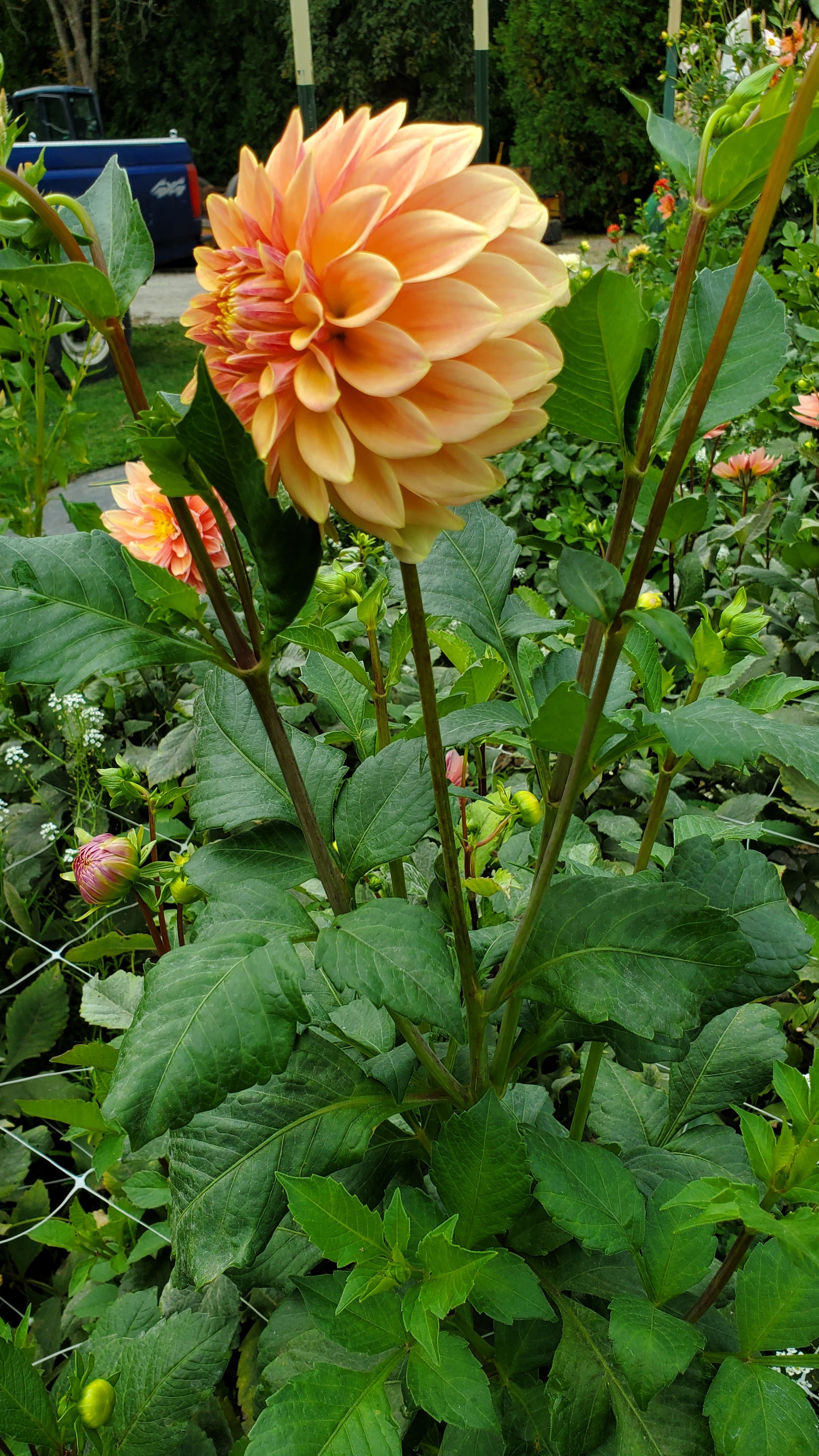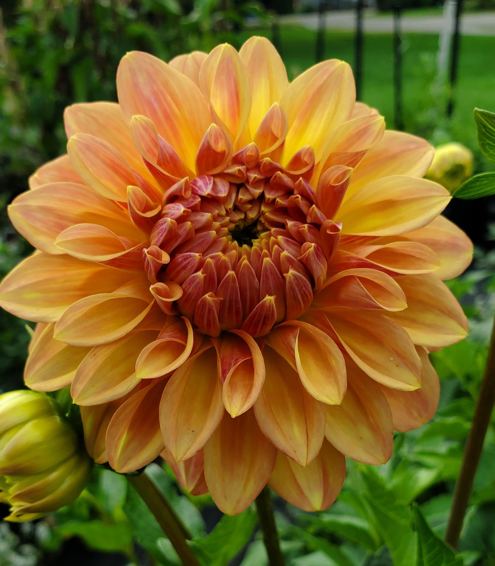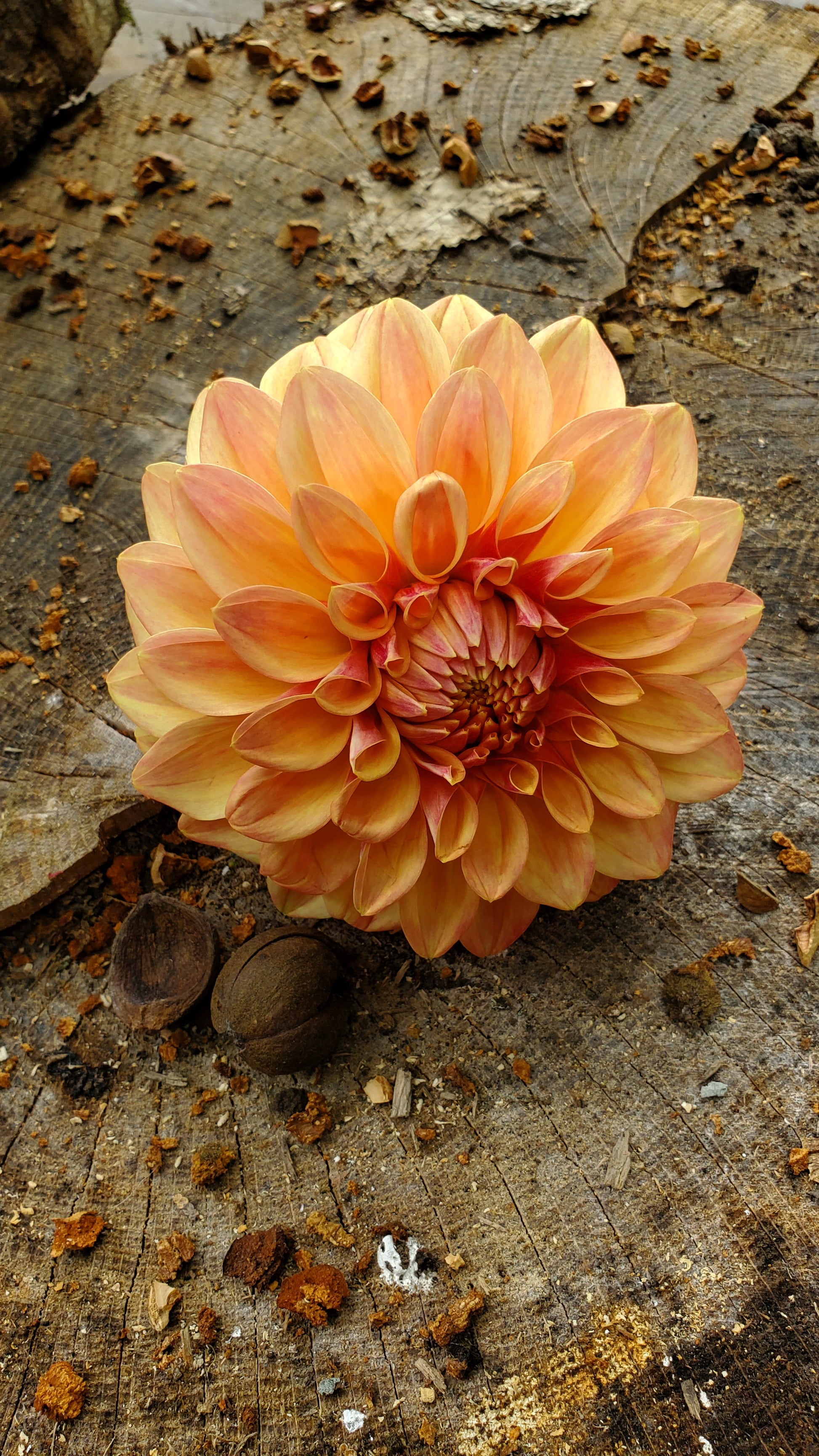 She is a Cameleon, changing from a luscious cantaloupe, streaked with orange and yellow, to a softer version as the weather changes. This is a favorite of mine; it radiates warmth and cheerfulness.