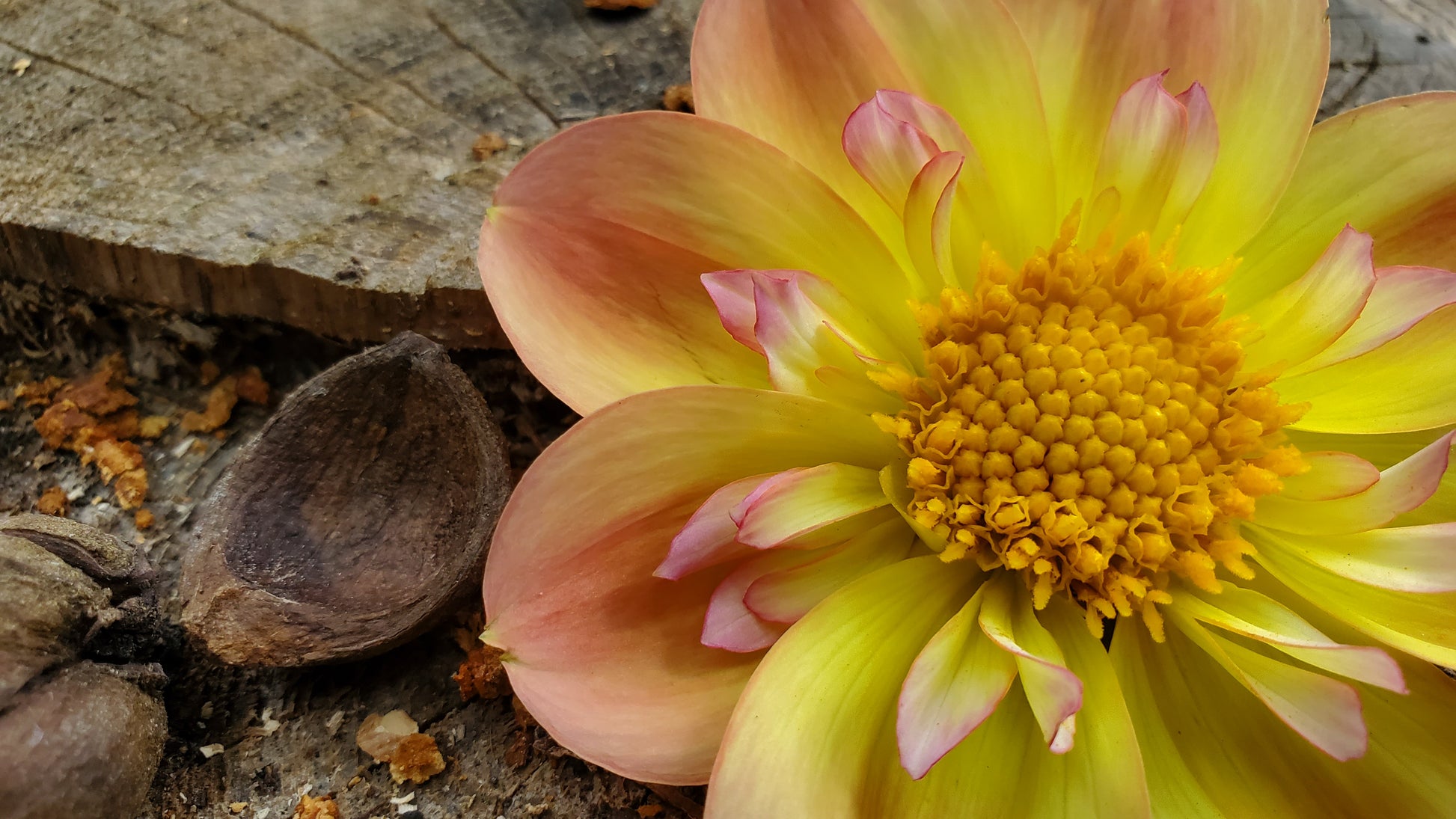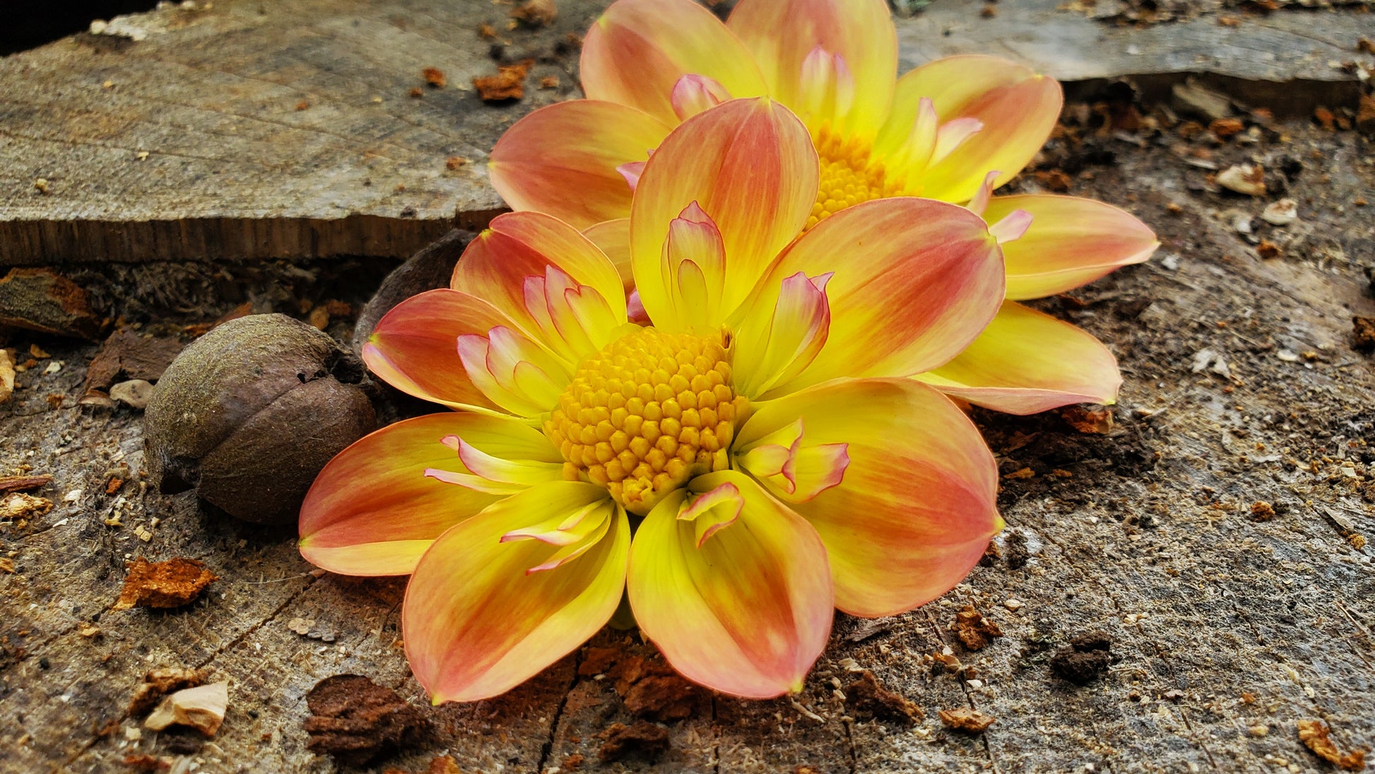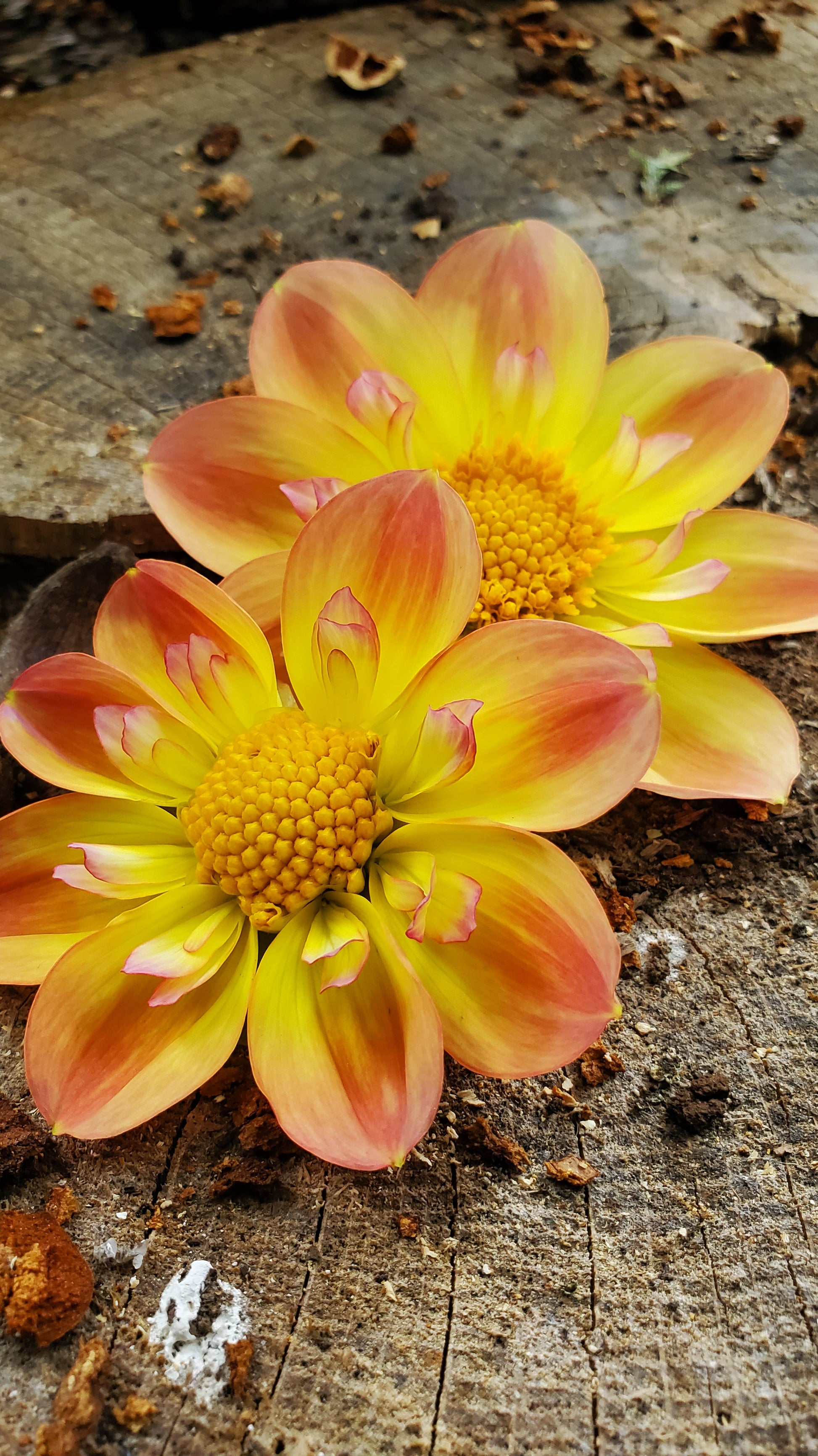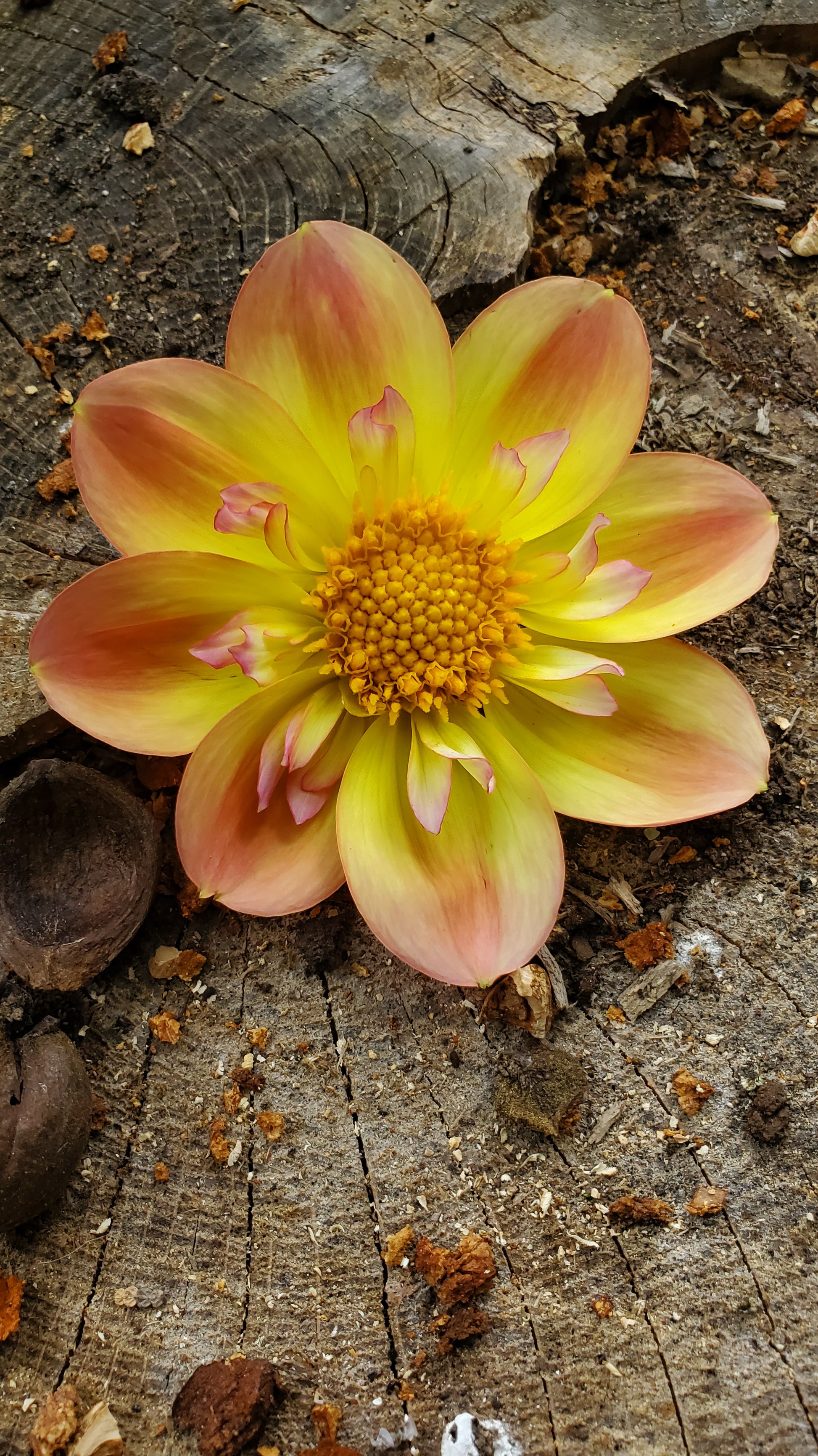 An enchanting collarette, with an almost green-yellow base swathed with a paint brush stroke of orange-red down the center of each petal. Eileen's petaloids have the most beautiful red raspberry picotee edge. If you love your collarettes, she's a must for the garden.