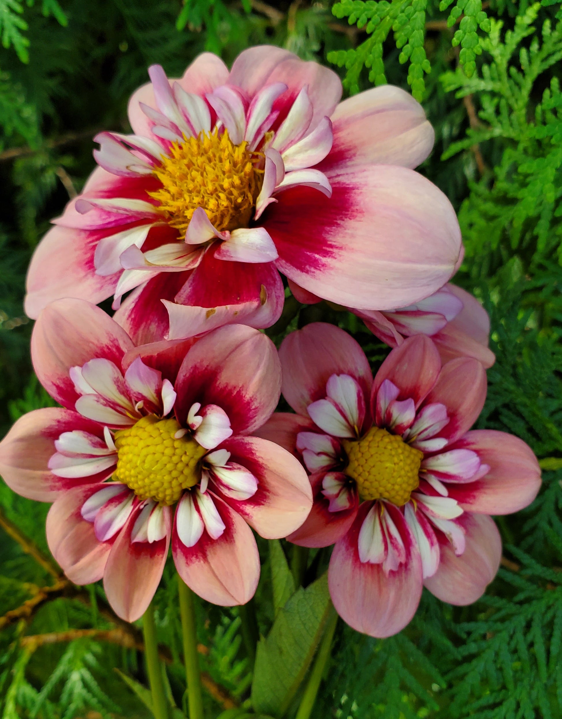 Rhubarb and Custard, a unique and unusual color combination in the collarette world. The dusty pink with its dark merlot center and creamy florets, is charming, yet dynamic in a soft sort of way. This one took me years to acquire, but well worth the wait.
