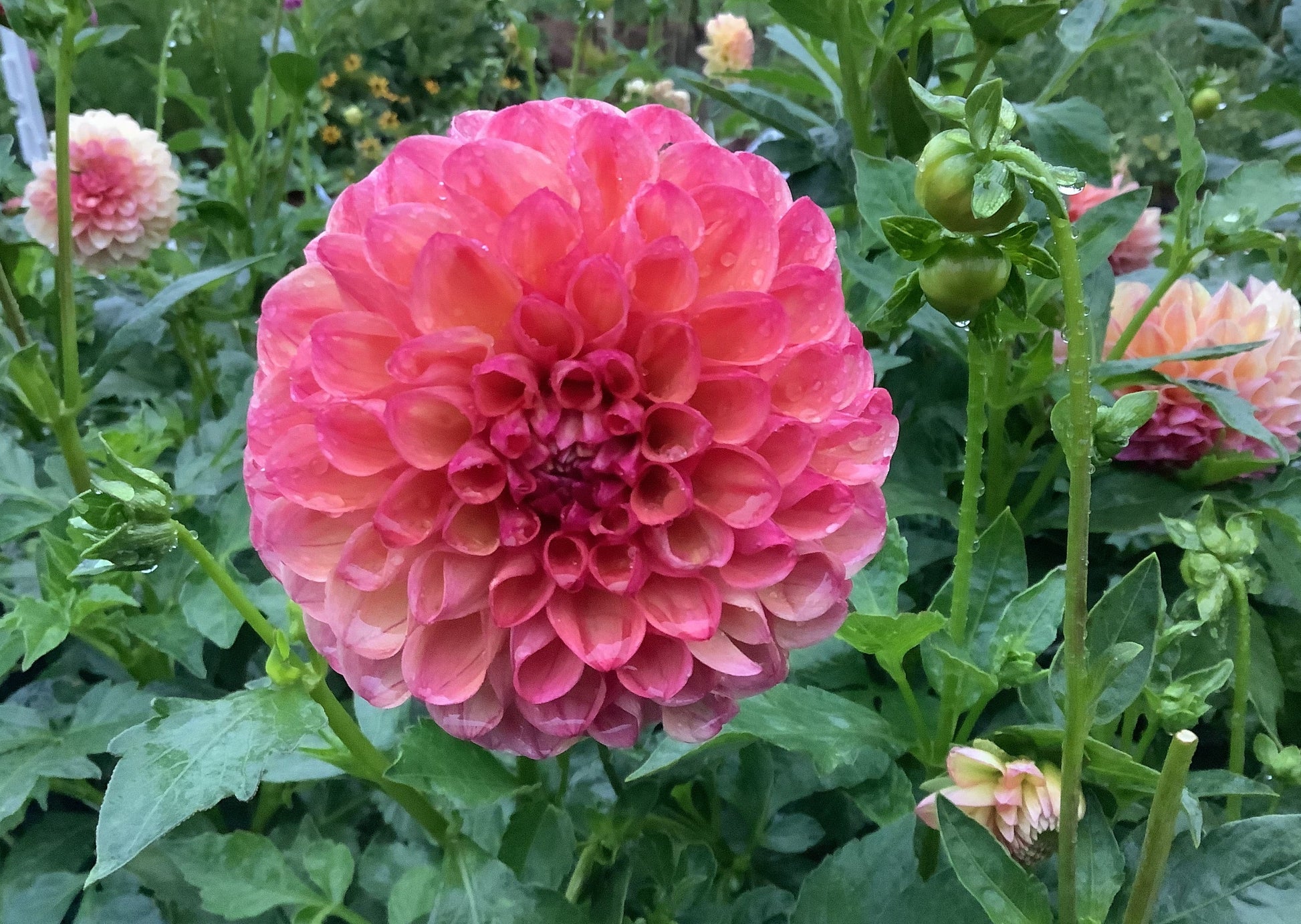 Robinhood is one of those dahlias that has so many variations. Orange-raspberry, Fushia speckled with peach, and a deep coral with hints of dark rose. I adore this dahlia. It's as if one has a sunset in their garden.