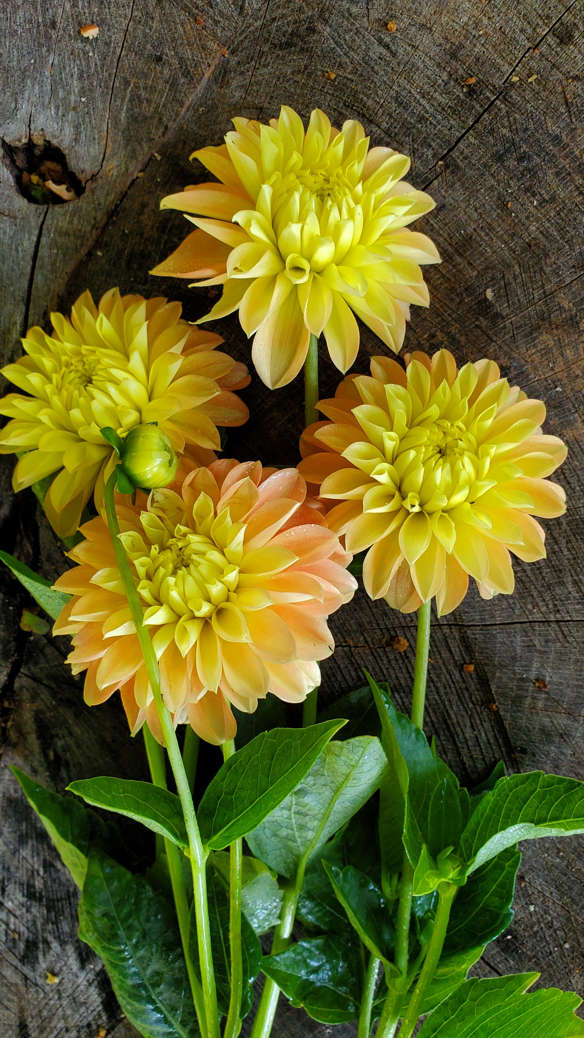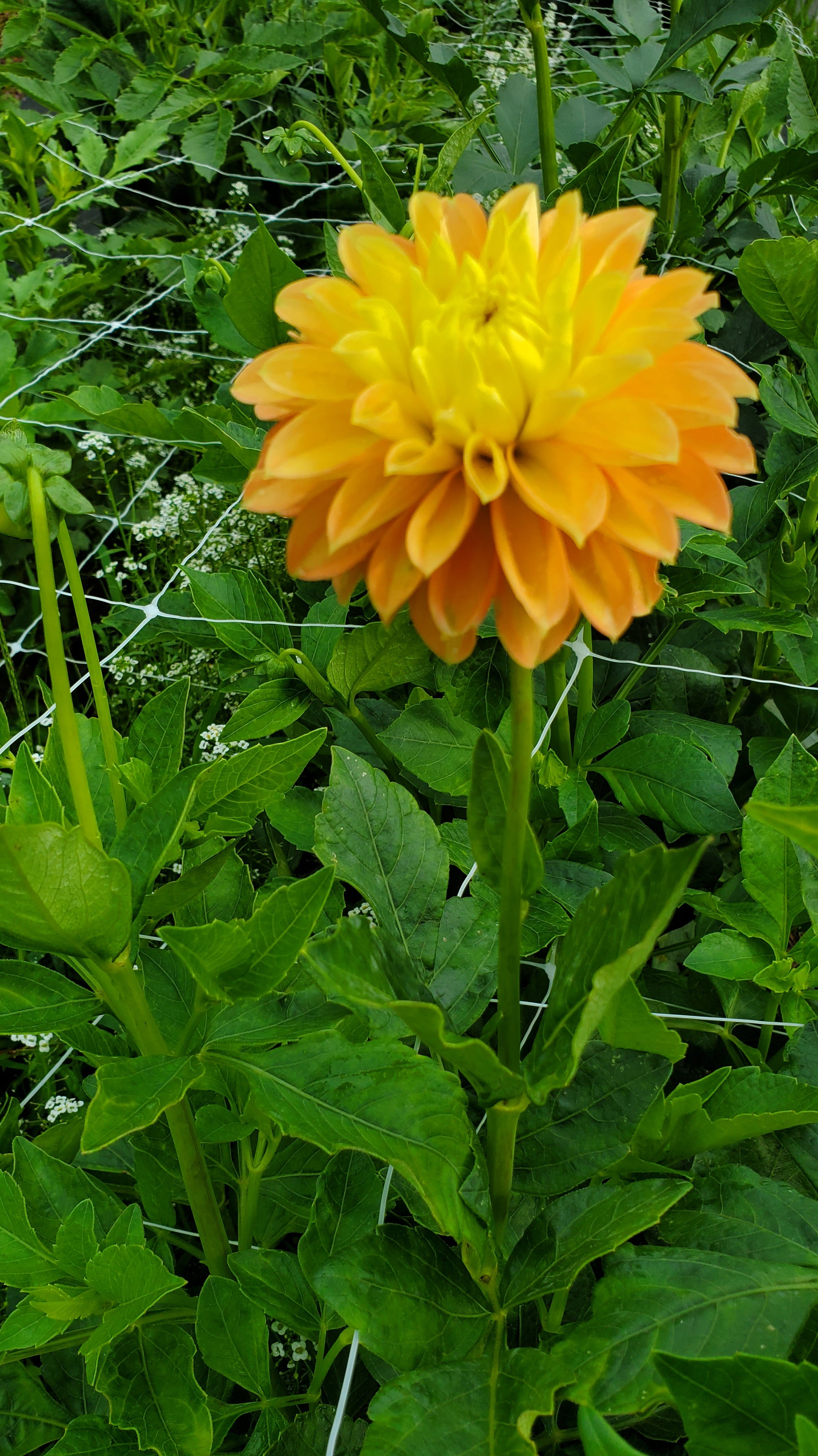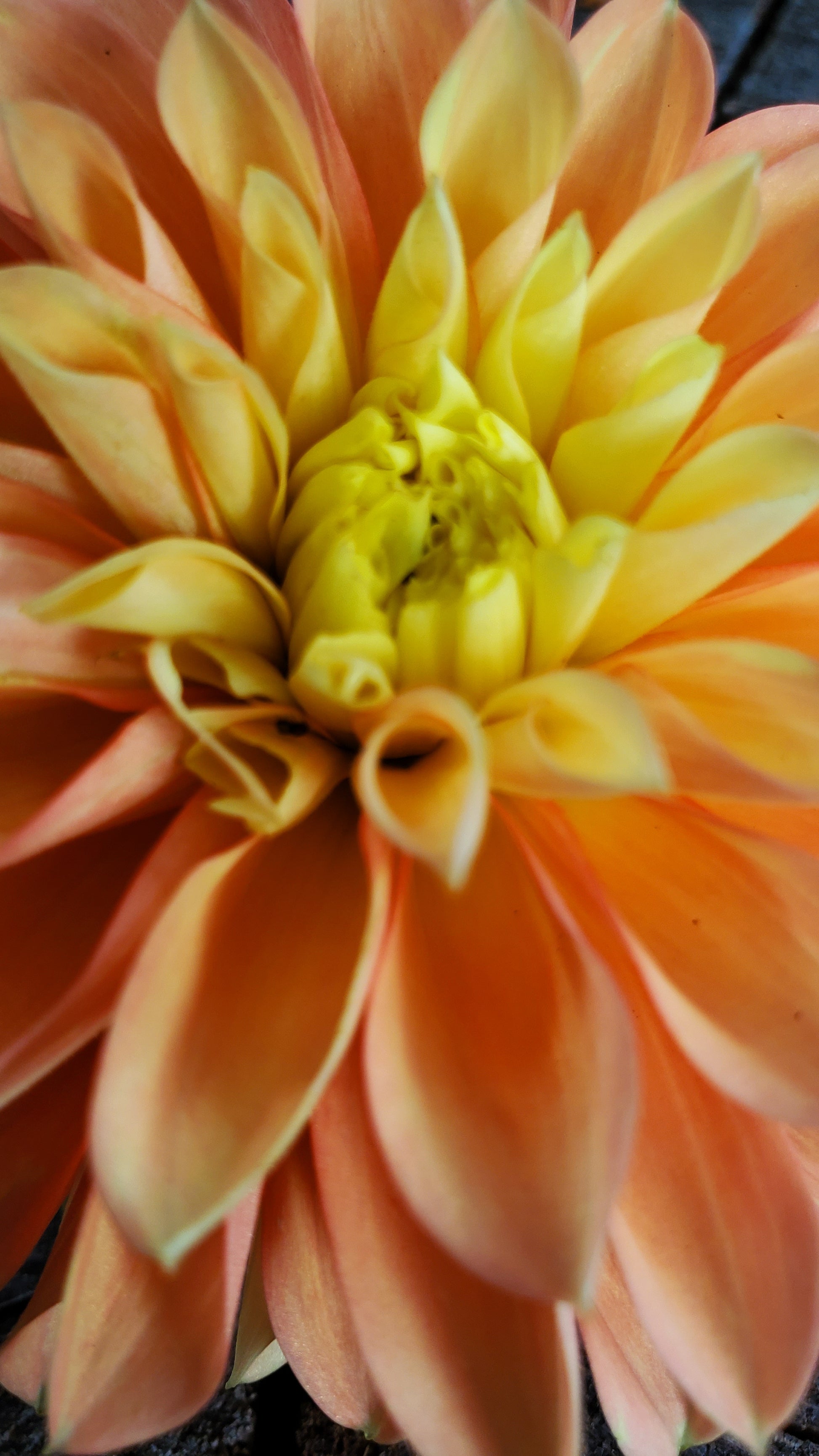 This dahlia is amazing! Melon with pink undertones and the center is a clear yellow that just pops. When she starts blooming, she doesn't stop. I love it in bouquets.
