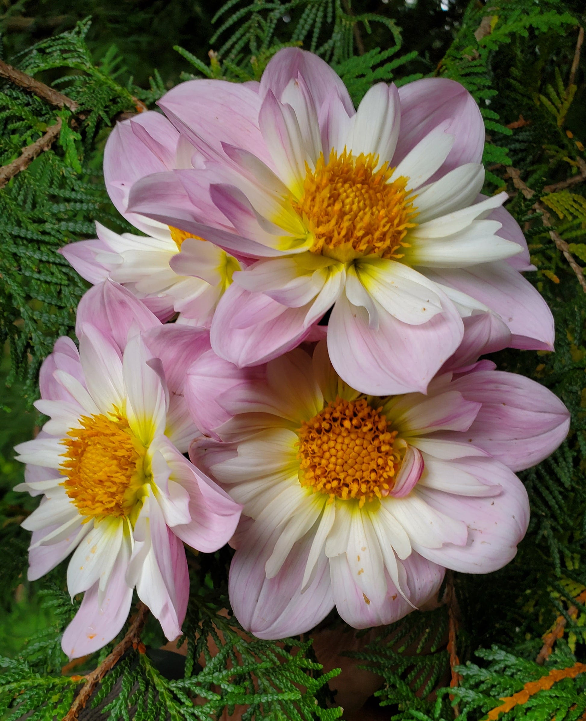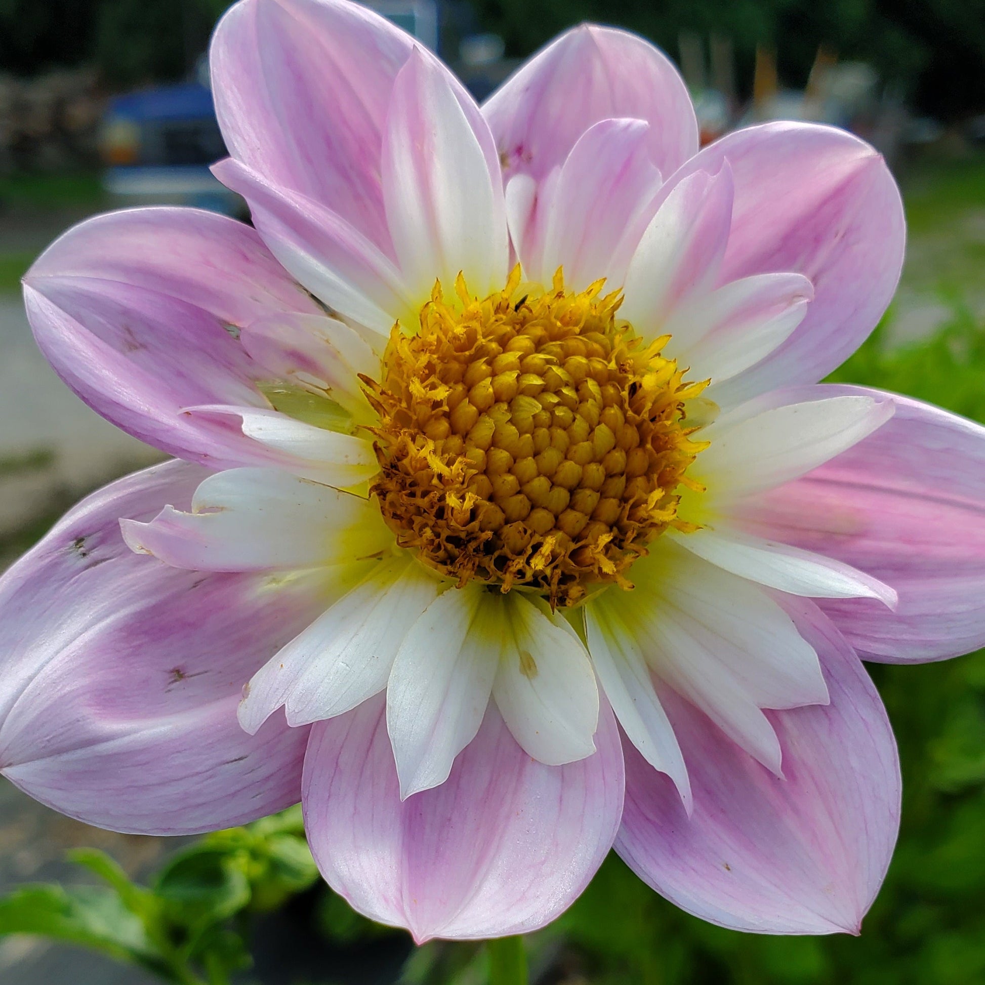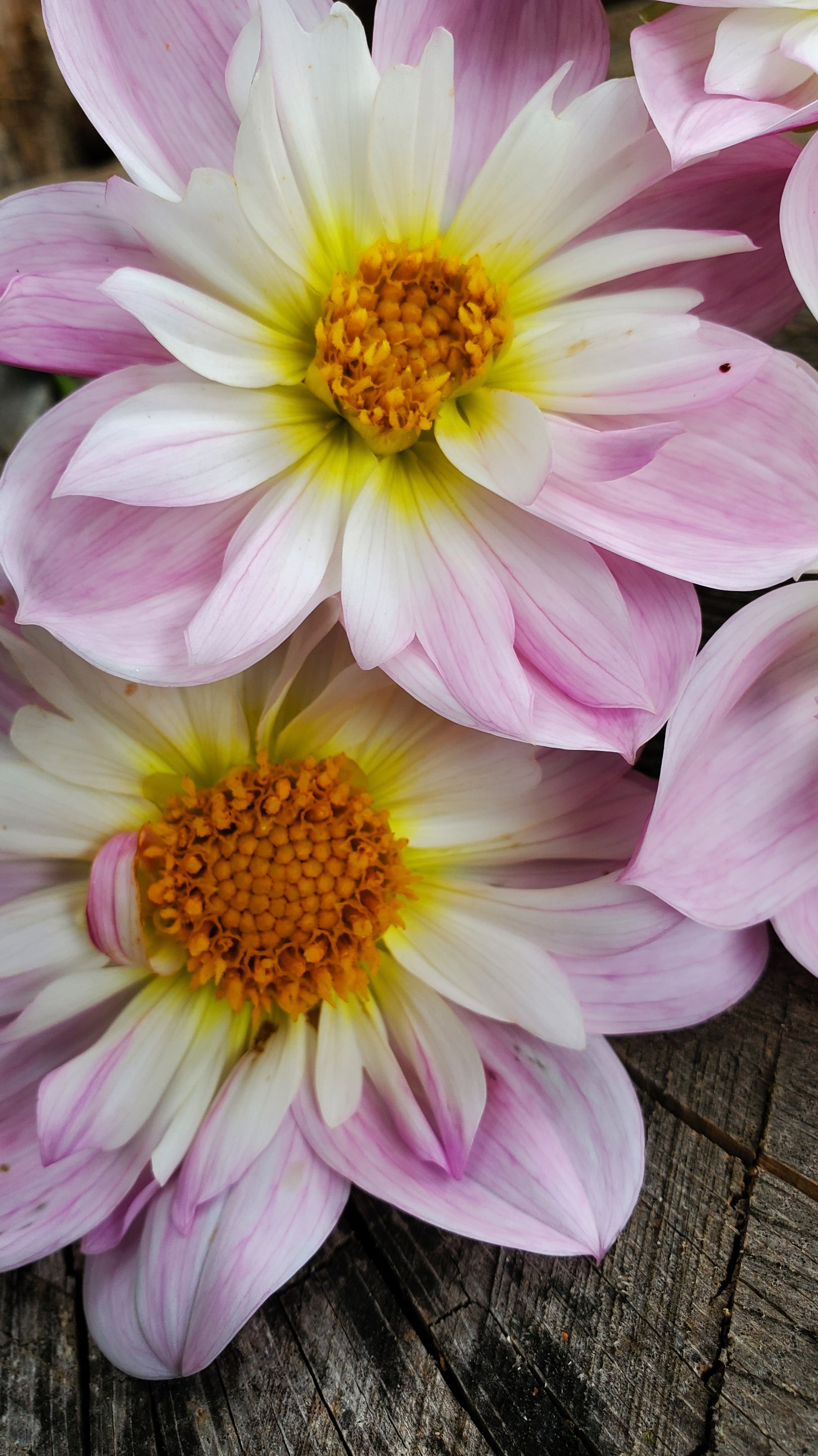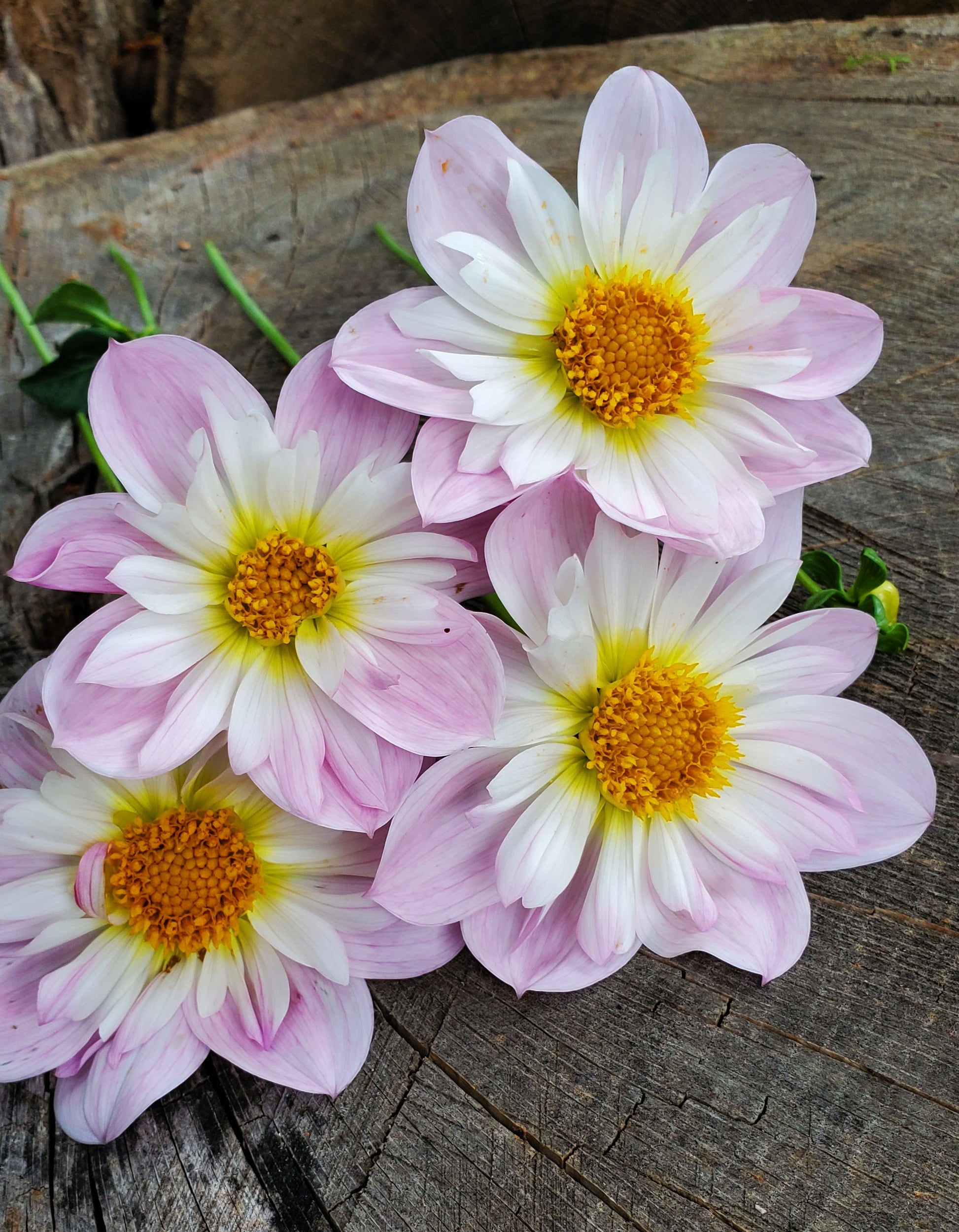 Soft lavender petals with white ray florets and a tiny bit of sunshine yellow in the center. Collarettes, if harvested just as the pollen is beginning to show, I've found, will last up to 5 days in a vase. They lend a soft, delicate look to any bouquet and add that sweet touch of whimsy. She grows tall, has great stems and blooms constantly.
